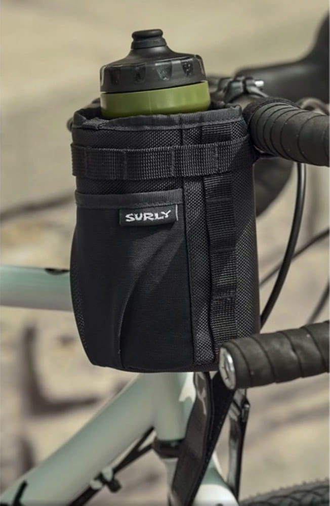 Die Surly Dugout Bag versorgt dich während der Fahrt mit Proviant und lässt sich mit nur einer Hand bedienen. Die stabile Tasche wird mit 3 OneWrap-Riemen sowie einem Surly Whip Lash Gear Strap an Lenker, Vorbau und Gabel befestigt.
