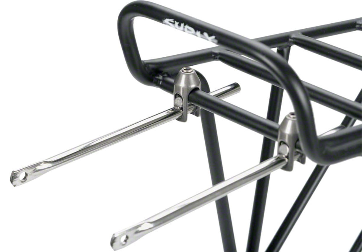 Dieser robuste Gepäckträger aus Chromoly-Stahl wird seit Jahren auf Expeditionen auf der ganzen Welt eingesetzt. Er verfügt über Montageteile aus Edelstahl für die Installation. Er ist sowohl höhenverstellbar als auch für eine große Auswahl an Radgrößen geeignet, sodass Du den Schwerpunkt für eine stabile Fahrt so niedrig wie möglich halten kannst. Der Surly Rear Disk Rack ist in zwei Versionen erhältlich, Standard (RK0147) und Wide (RK0148) für Fatbikes.