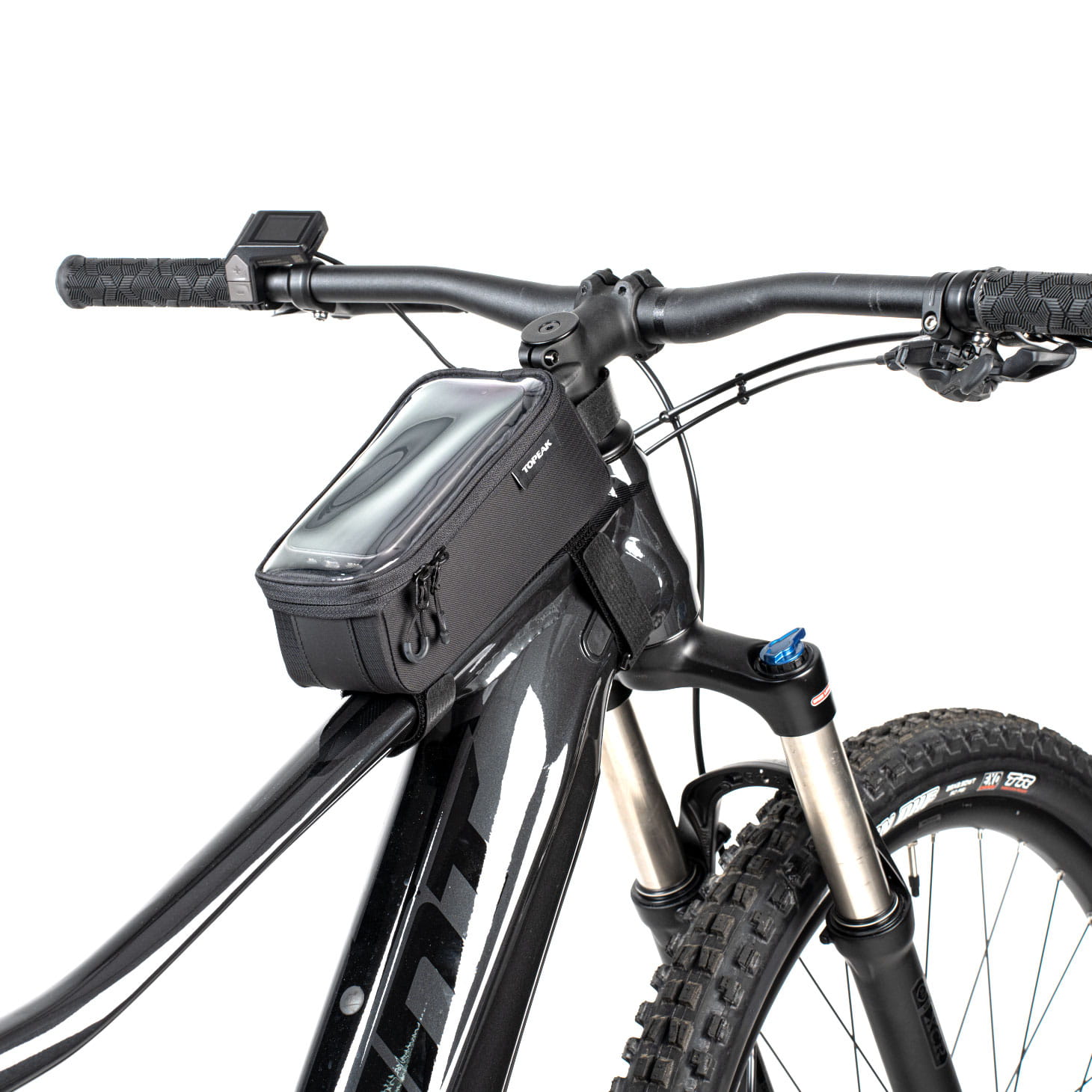 Geräumige Oberrohrtasche mit integriertem Smartphone-Fach