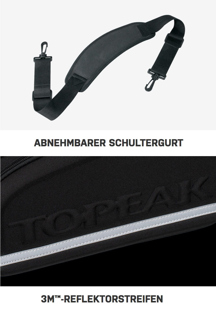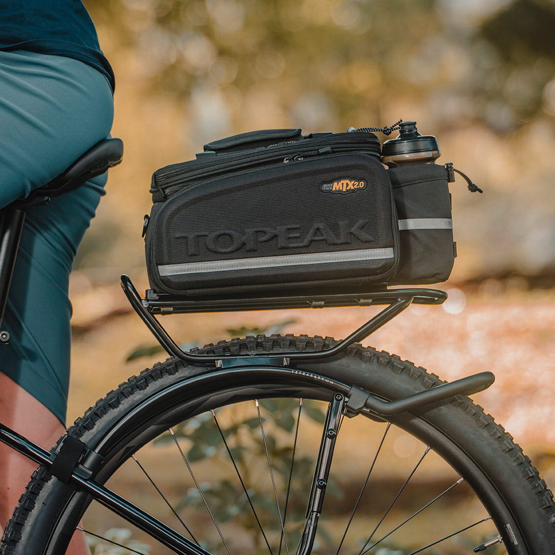 - Falls du keinen Topeak MTX Gepäckträger hast kannst du diese Tasche auch mit dem optional erhältlichen Topeak Omni QuickTrack Adapter befestigen.