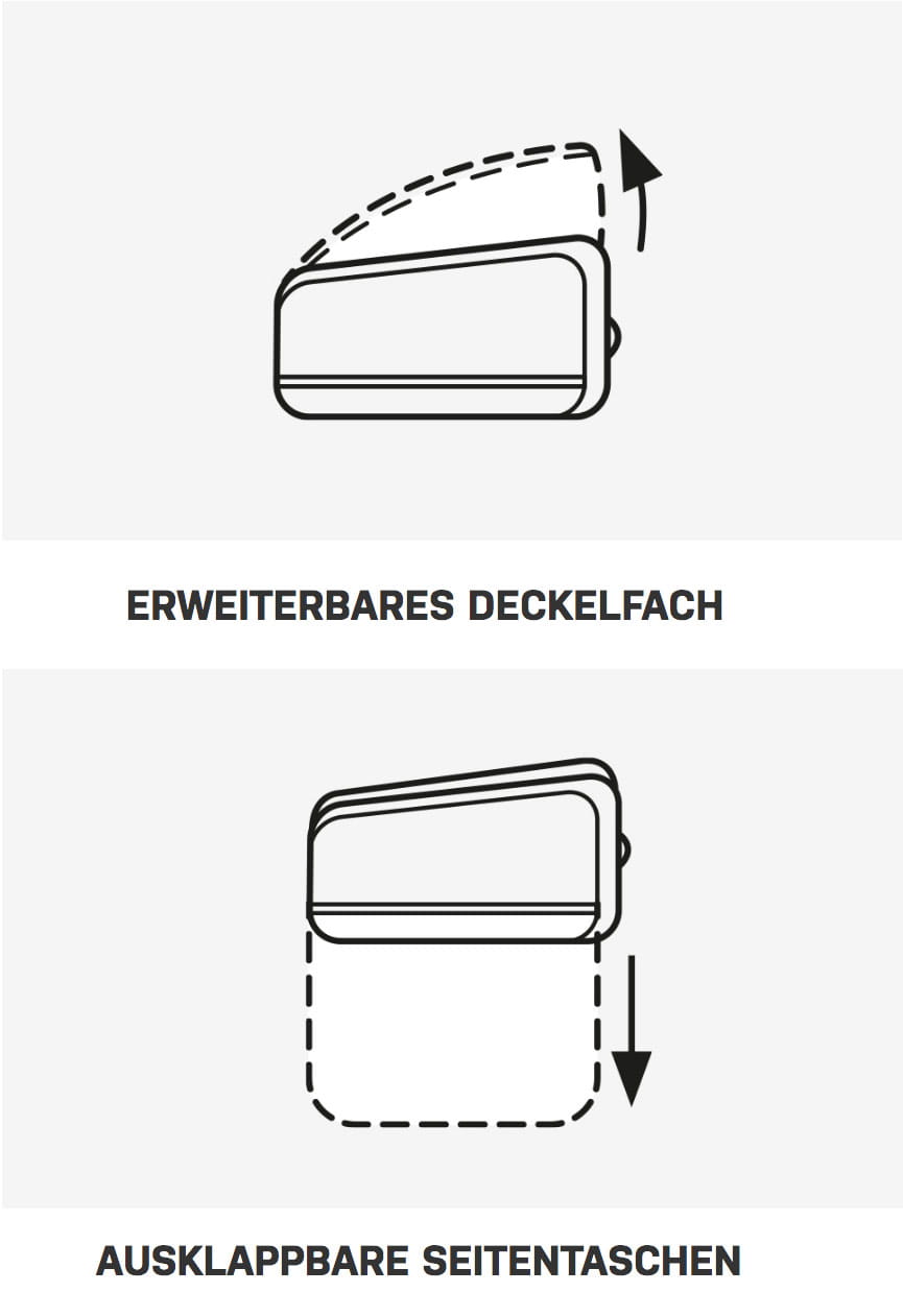 - 2 ausklappbare Seitentaschen