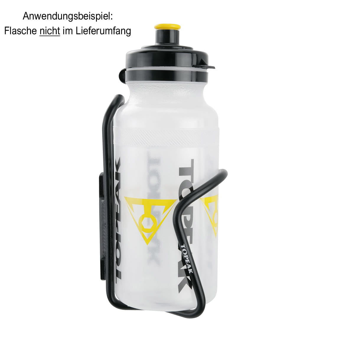Der mattschwarze Flaschenhalter sieht gut aus und hält diverse Flaschentypen sicher am Rad.