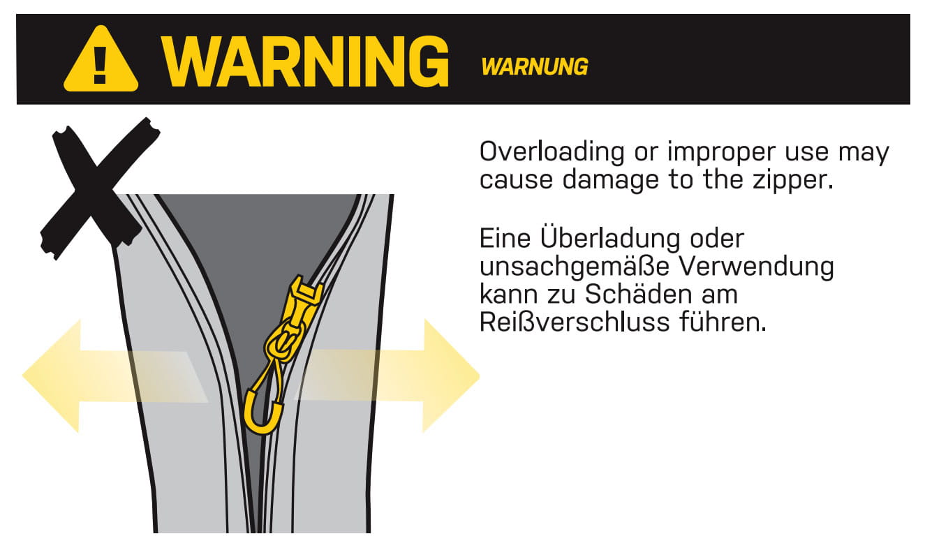- Hinweis zum Reißverschluss in der Beschreibung beachten!
