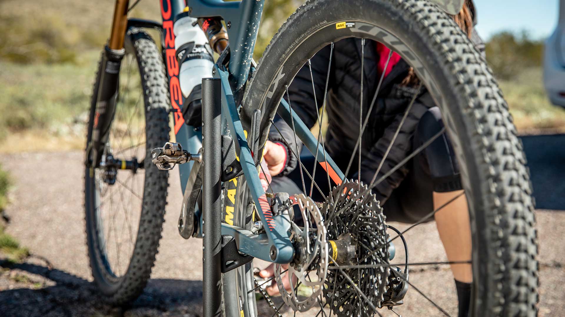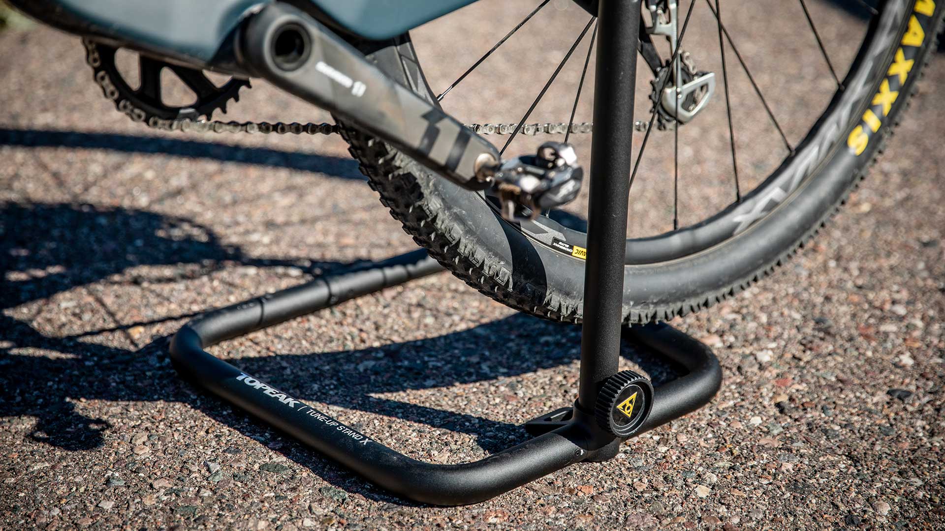 Die perfekte Lösung zur Aufbewahrung von E-Bikes oder schweren Fahrrädern. Dank der in drei Positionen einstellbaren Haken lässt sich der Tune-Up Stand X optimal an die Ketten- und Sitzstreben anpassen. Ideal geeignet für die Wartung des Antriebsranges sowie zum Säubern, Verstauen und Präsentieren des Fahrrades.