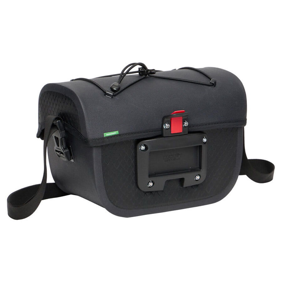 Die Aqua Box Lenkertasche aus recycelten Materialien hält alles in sicht- und greifbarer Nähe. Sie lässt sich mit einer Hand öffnen und hält im großen Hauptfach ein zusätzliches Steckfach mit Reißverschluss bereit. Die Gummizughalterung auf dem Deckel ermöglicht die Befestigung praktischer Klarsicht-Taschen zur Navigation (Beguided small, Beguided big - nicht im Lieferumfang enthalten).