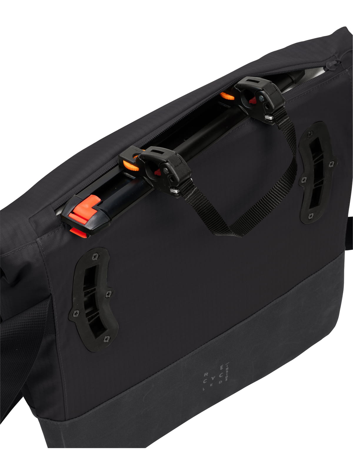 Die Vaude CityMe Bike II kann beim Stadtbummel als "Messenger-Bag" quer über dem Rücken getragen werden oder sie lässt sich durch die abnehmbare Plug & Ride Schiene im Handumdrehen in eine Radtasche verwandeln. Wird die Radtaschen-Funktion nicht benötigt, lässt sich die Schiene leicht abnehmen und im Fach auf dem Deckel verstauen.