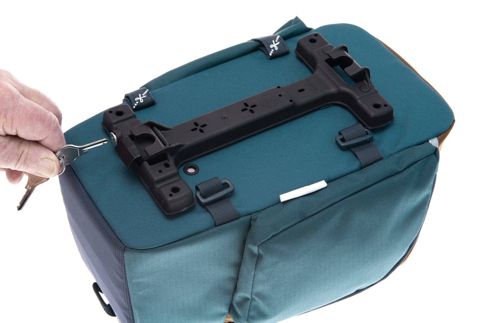 Gepäckträgertasche für das Fahrrad mit Racktime Adapter.