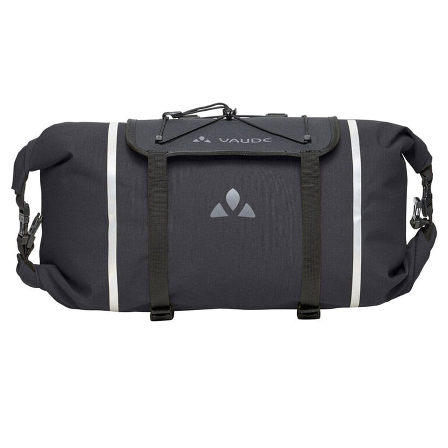 Der robuste VAUDE Packsack wird über einen wasserdichten Wickelverschluss verschlossen und mit zwei Schnallen sicher in der Halterung fixiert. Mit 10 Litern Volumen bietet er ausreichend Platz für Schlafsack, Kleidung oder anderes leichtes Bikepacking-Gepäck.