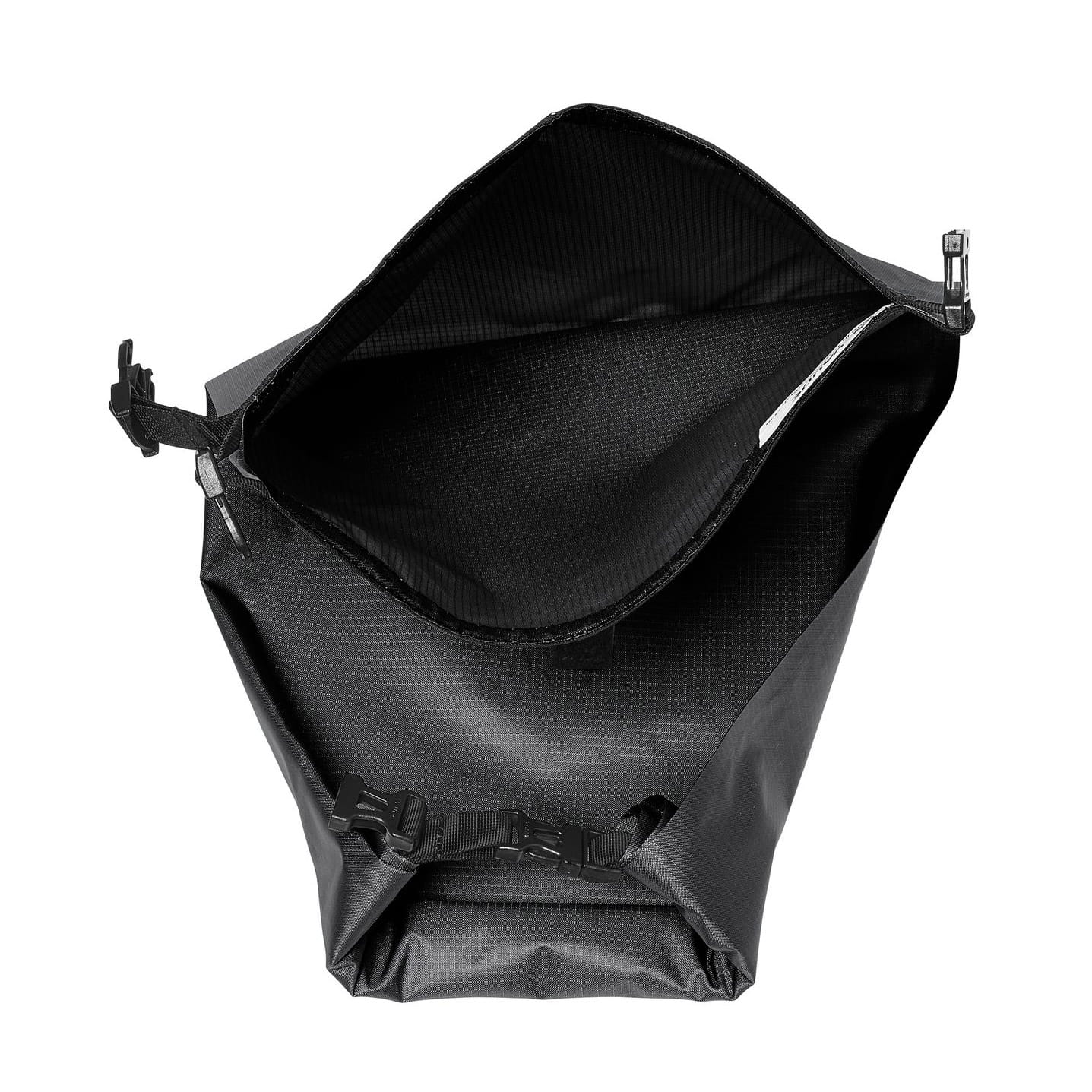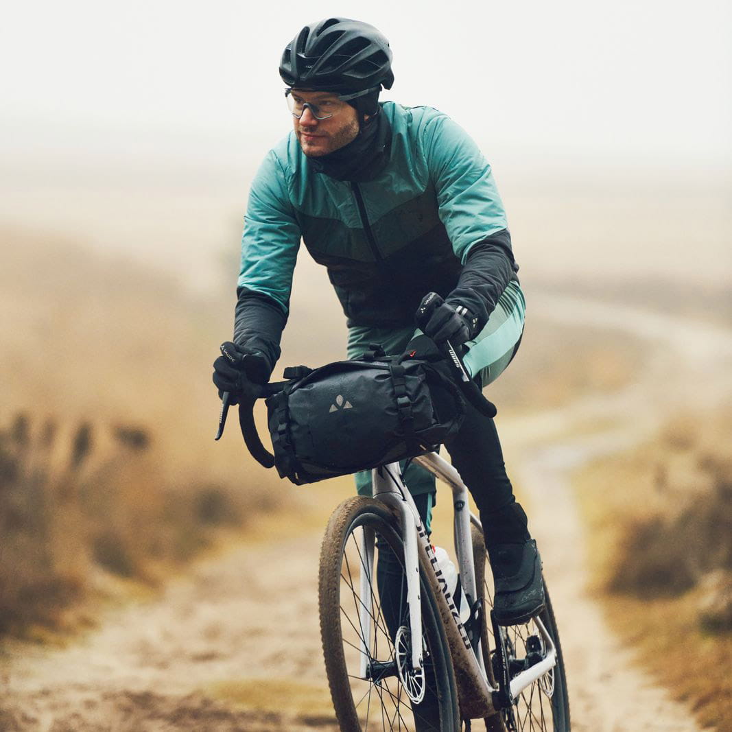 Der Packsack ist von beiden Seiten zugänglich und über Wickelverschlüsse wasserdicht komprimierbar und eignet sich hervorragend für leichtes Gepäck und einen Schlafsack. Über Packriemen auf der Oberseite kann zusätzliches Gepäck und sogar ein Zelt außen befestigt werden. Die Halterung des Packsackes passt zu allen Mountainbike-Lenkern und ist mit ihrer Breite von 30 cm auch mit allen gängigen Gravel- oder Rennradlenkern kompatibel. Durch die praktischen Abstandshalter und die in der Breite verstellbaren Fixierungen wird immer genügend Freiheit zu Brems- und Schaltzügen gewährleistet.