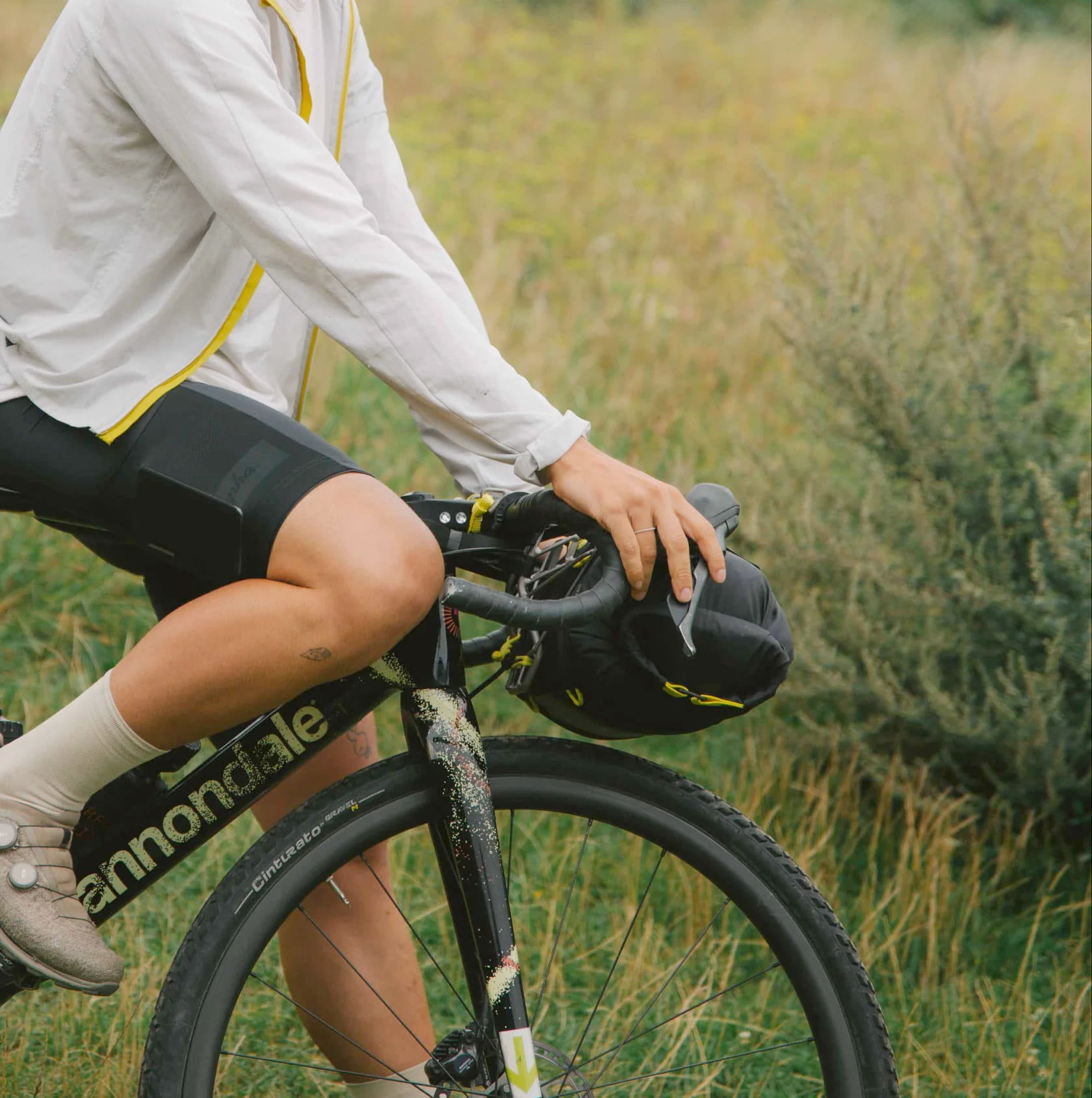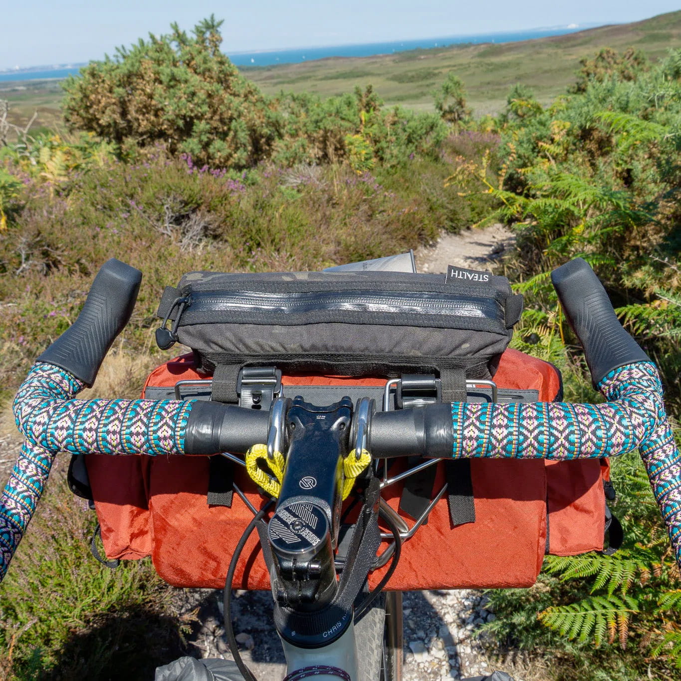 CLIFF The Bag Hanger from WholeGrain Cycles is a high-quality handlebar luggage support made from durable stainless steel that securely positions your handlebar bag or roll away from cables and the front wheel. It creates more space on the handlebar and improves accessibility as well as tire clearance – ideal for bikepacking, gravel, and adventure rides with luggage. Thanks to its tool-free mounting system, CLIFF can be quickly and flexibly installed on different bikes.
