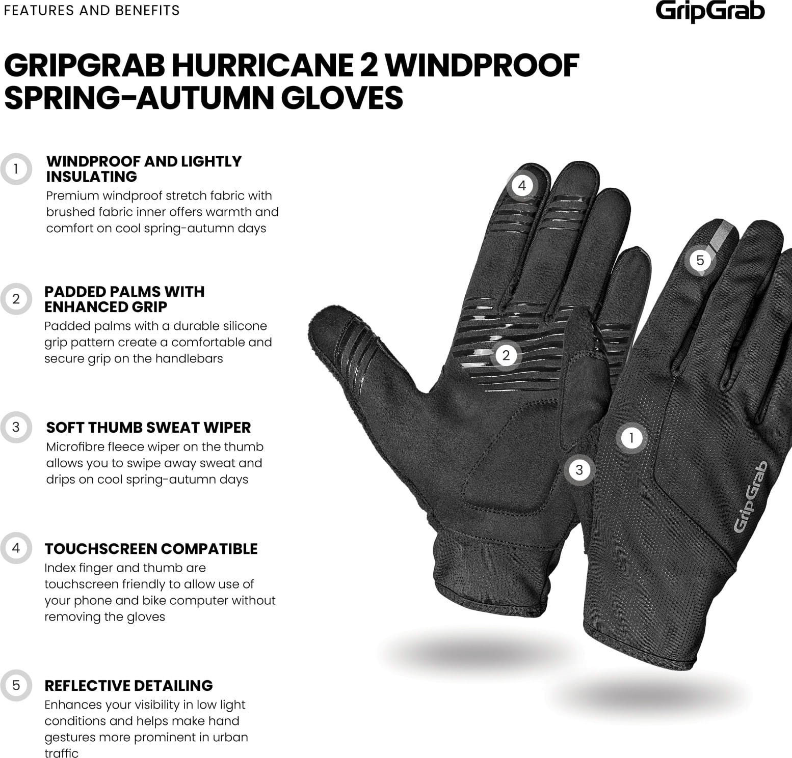 - 1 Paar GripGrab Hurricane 2 Winddichte Frühling-Herbst Übergangshandschuhe