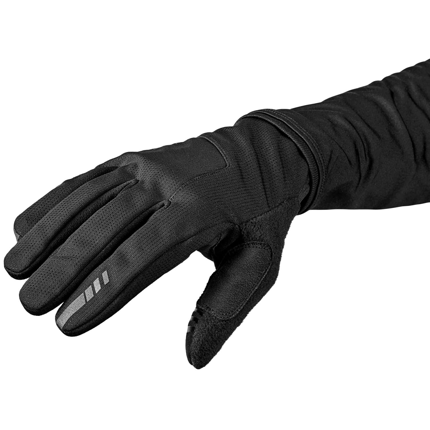 Das hochwertige winddichte Stretchgewebe auf der Rückseite der Handschuhe ist mit einer Wassersäule von 15.000 g/m²/24 h hoch atmungsaktiv. Dieses Material schützt Deine Hände an kühlen Tagen vor Windchill. Das Gewebe ist außerdem mit einer PFC-freien, dauerhaft wasserabweisenden Behandlung versehen, die leichten Regenschauern und Spritzwasser standhält.