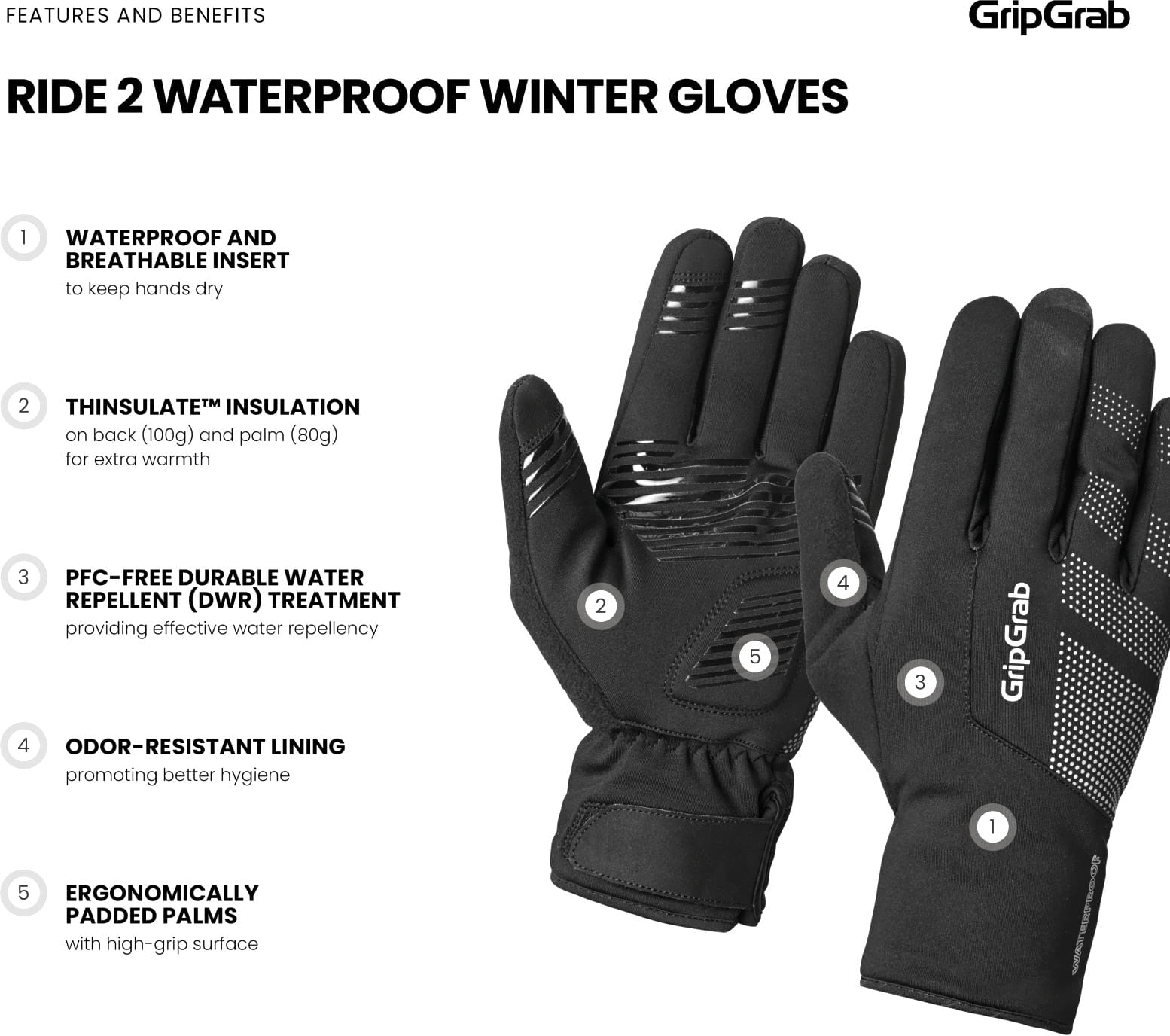 Die GripGrab RIDE 2 wasserdichten Winter Handschuhe sind für Radsportler gedacht, die ein außergewöhnliches Preis-Leistungs-Verhältnis suchen, ohne dabei Kompromisse bei Leistung, Wärme oder Schutz während Fahrten bei kaltem Wetter einzugehen.