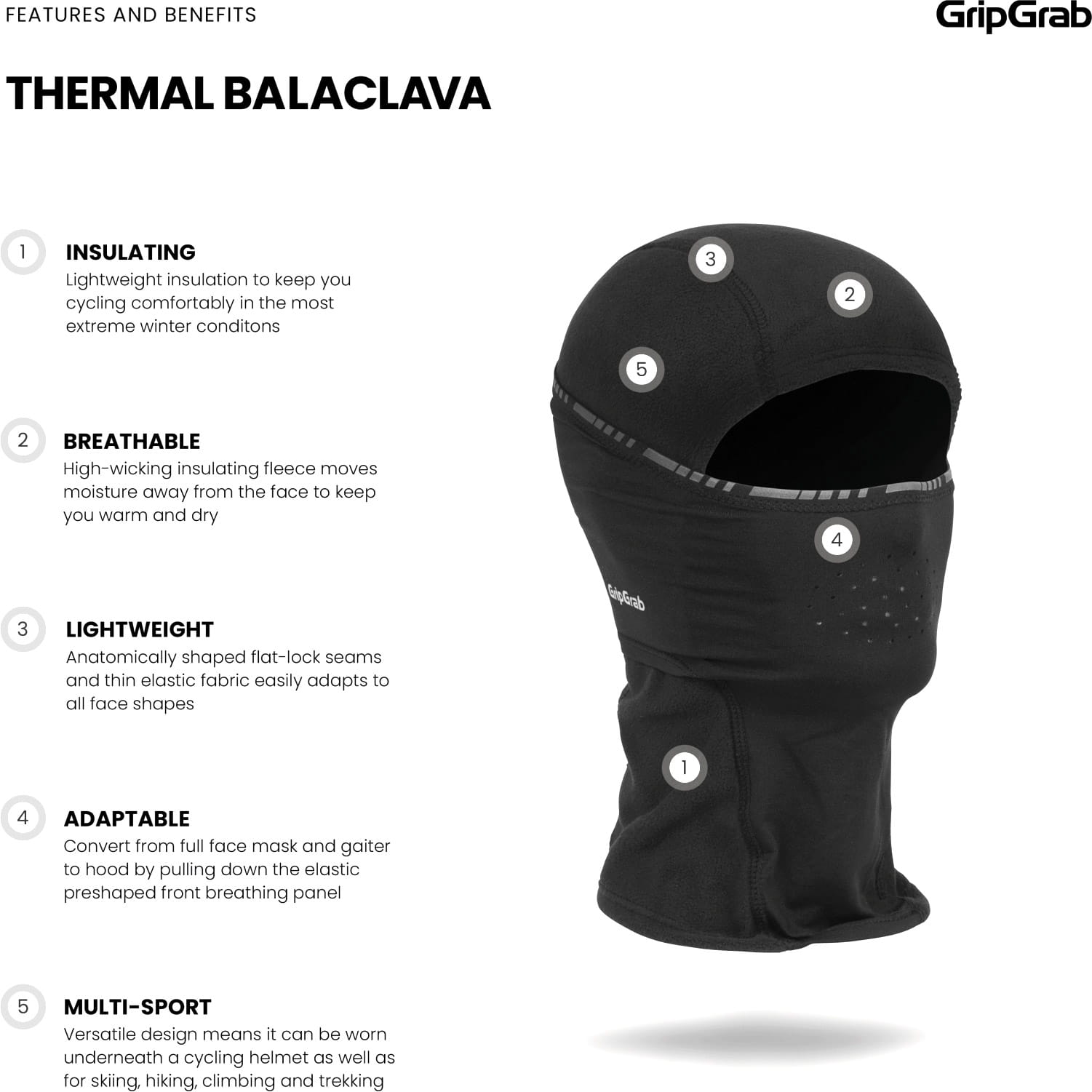 Die GripGrab Thermo Winter Balaclava ist eine warme, weiche, leichte und wärmeisolierende Kopfbedeckung speziell für den Radsport.
