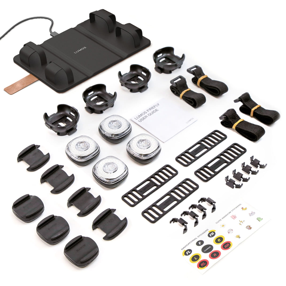 In Verbindung mit einem Lumos Ultra Helm bringt das 4er Set Firefly Sicherheit in die Benutzung eines eScooters. Front-/Heckleuchten, Blinker und Bremslicht, alles möglich. Top!