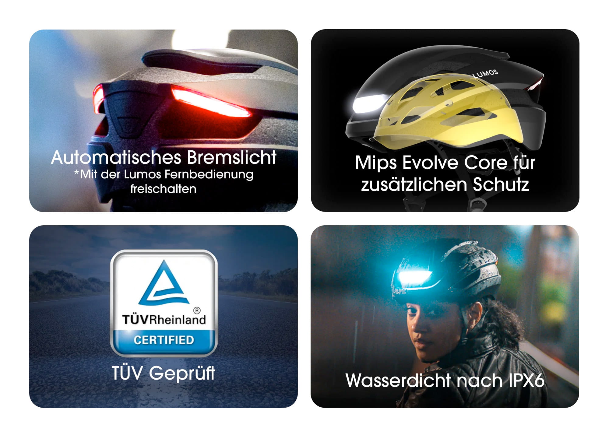 - Mit der Lumos Companion App (Android und iOS), lässt sich der Helm einstellen und der Akkustand abrufen (Helm ist auch ohne die App voll einsatzfähig)
