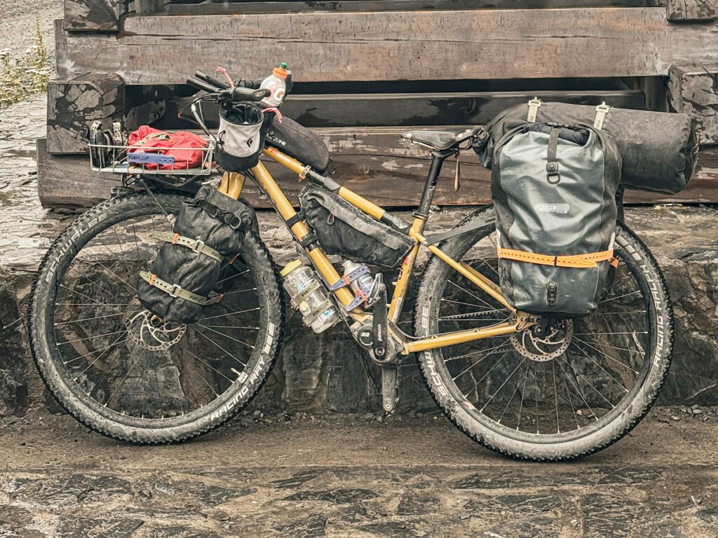 Außerdem würde ich nicht mehr die großen Ortlieb Backroller mitnehmen. Auf langen Schotterpisten haben sie stark gewackelt und an meinem Old Man Mountain Gepäckträger Material abgetragen – vor allem, weil sie schwer beladen waren. Ich habe andere Reisende getroffen, die Panniers mit Straps– oder Klettsystemen befestigt hatten, und das hat sich auf den endlosen Ripio-Pisten deutlich besser bewährt als das klassische Ortlieb-Hakensystem.
