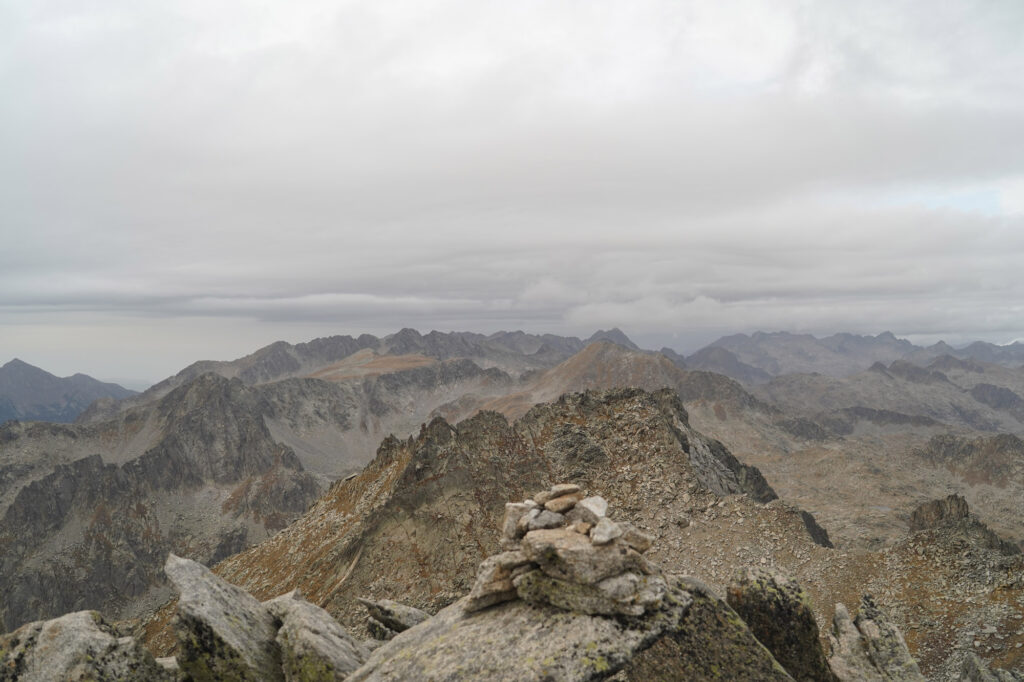 Das Wetter in den Pyrenäen kann unberechenbar sein. Deshalb hatte ich Hardshell, Daune und Fleece dabei.
