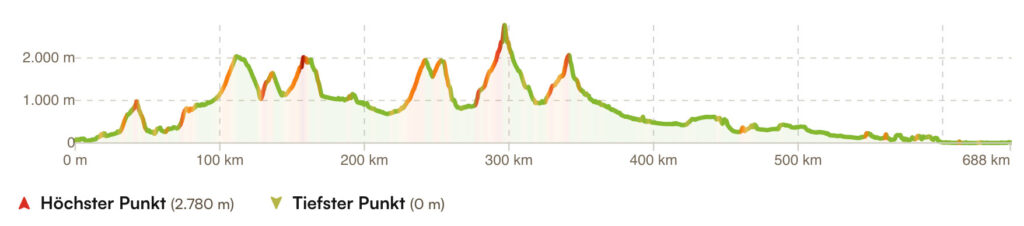 - Erwartete Höhenmeter: rund 20.000 hm.