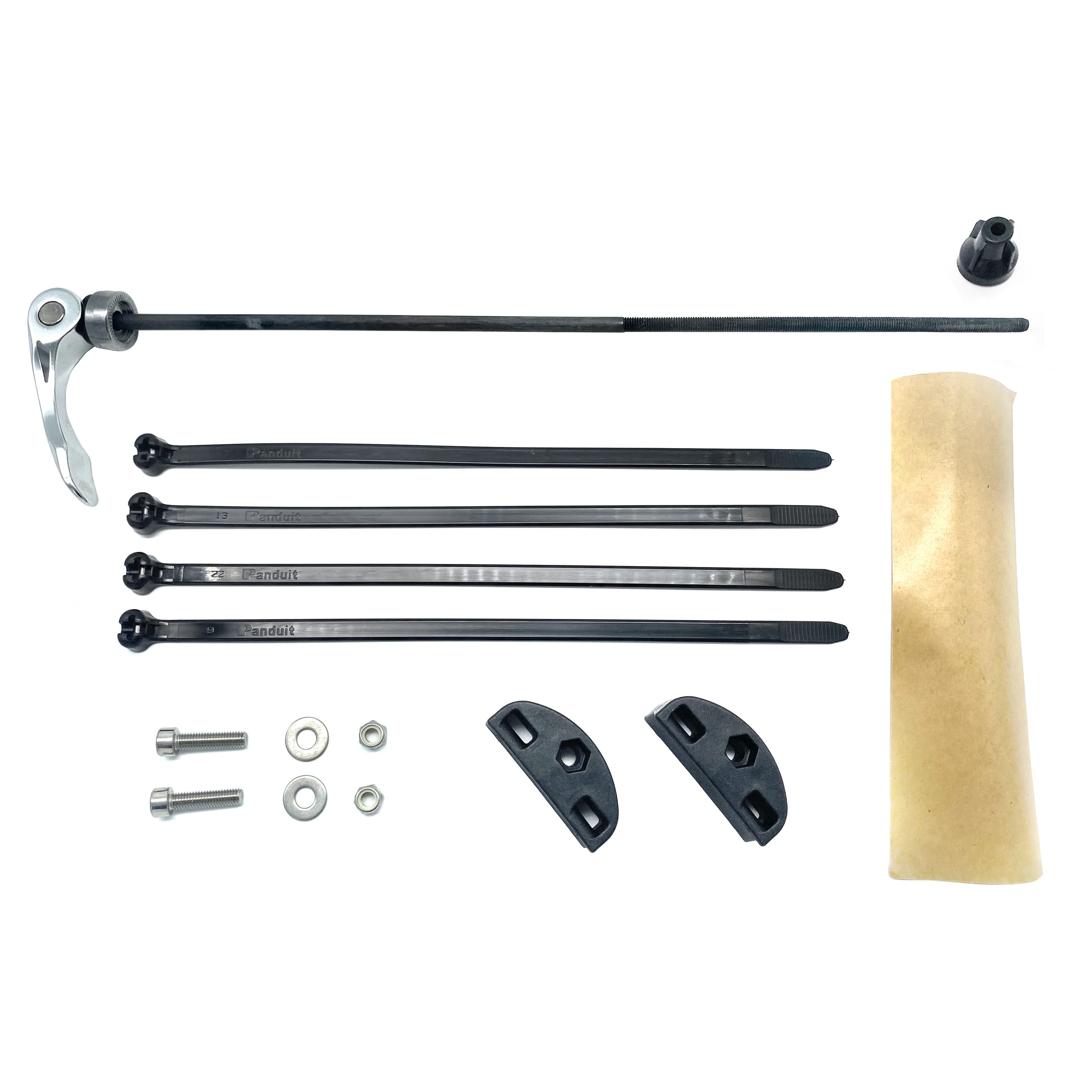 Das Zusatz Befestigungskit für die Achs Montage lässt sich super einfach montieren und der Gepäckträger sitzt sehr stabil. Meiner Meinung nach besser als Gepäckträger die sich nur um die Gabel schnallen lassen. (hier ist von richtigen bike Packing Touren die Rede und nicht von Stadtrundfahrten auf denen man nur geringes Gepäck mit sich führt) Für Mtb's sehr zu empfehlen. Man muss nur vorher die Breite der Gabel abmessen und dafür das richtige Kit auswählen welches die verlängerte Schnellspannachse beeinhaltet. Von mir gibt es die volle Punktzahl in Sachen Befestigung, Festigkeit und Stabilität
