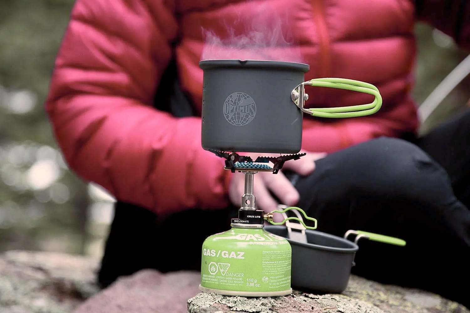 Das Optimus Crux Lite Solo Kochsystem kommt mit dem federleichten, präzise einstellbaren Crux Lite Kocher und dem Terra Solo Kochset für Expeditionen, bei denen es aufs Gewicht ankommt. Das perfekt geschnürte Paket beinhaltet einen Topf mit Ausgiesser und eine robuste Bratpfanne (die gleichzeitig als Topfdeckel dient) mit Antihaftbeschichtung.