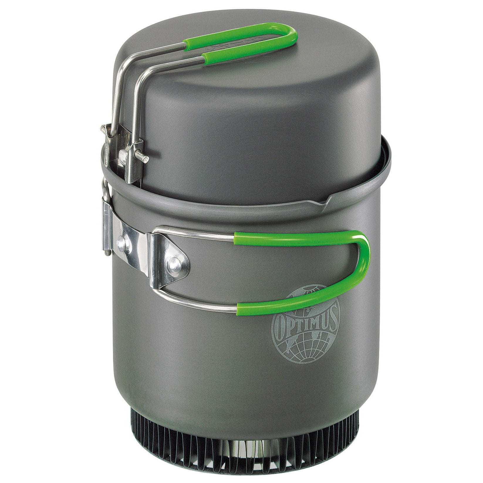 Das Terra Weekend HE Kochset besteht aus robustem, hart anodisiertem Aluminium mit Antihaftbeschichtung. Mit dabei ist der eindrucksvolle, sparsame Heat Exchange Topf, mit dem sich die Kochzeit um 20% reduziert. Mit dem Topf mit Ausgiesser und der robusten Bratpfanne (die gleichzeitig als Topfdeckel dient) lässt sich wunderbar kochen und braten. Das alles passt ordentlich aufgeräumt in die Netztasche.