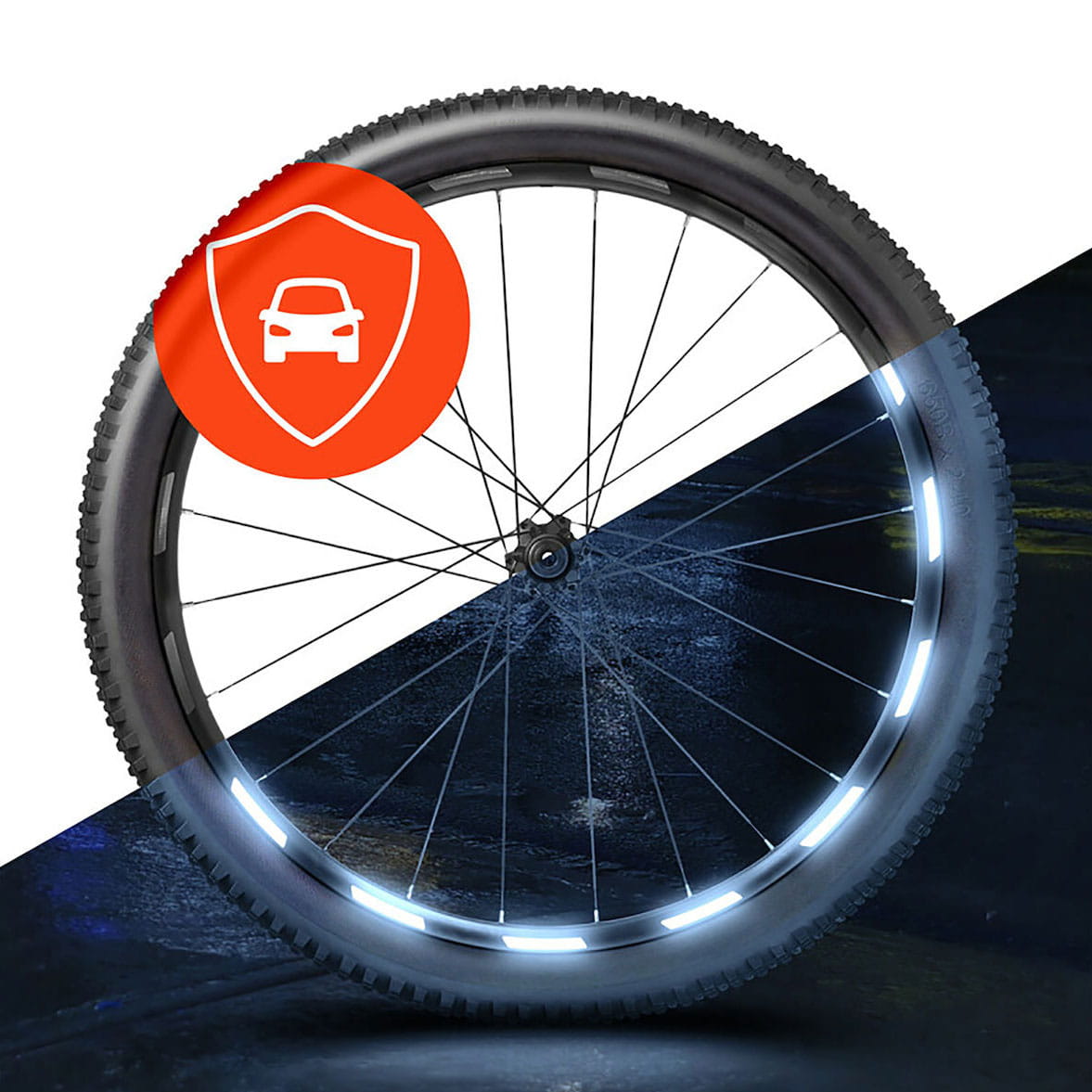 Bei Dunkelheit oder schlechter Sicht reflektieren die Sticker auftreffendes Licht zuverlässig und machen dich durch die Reifenrotation noch auffälliger. Nachts strahlen sie hellweiß, tagsüber bleiben sie unauffällig.