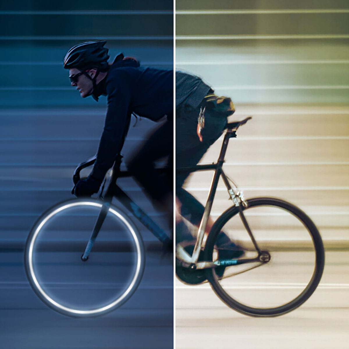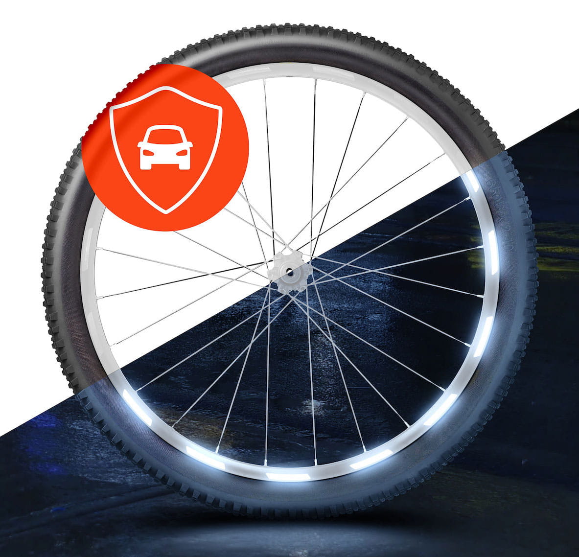 • Dynamische Sichtbarkeit: Die Reifenrotation sorgt dafür, dass du in Bewegung noch auffälliger bist