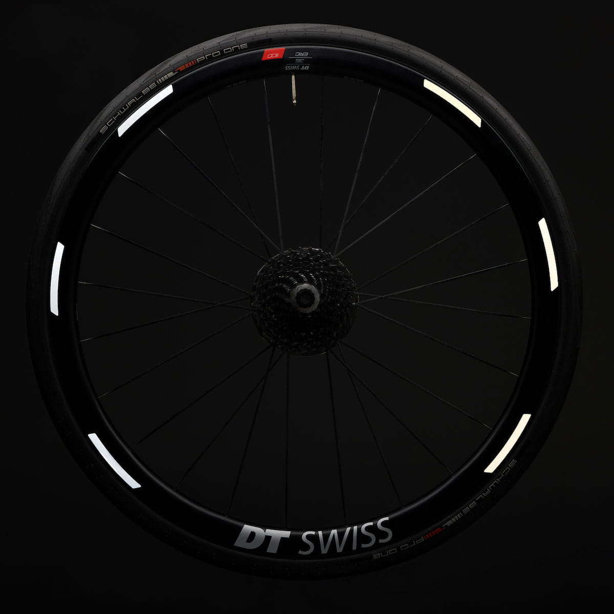 Bei Dunkelheit oder schlechter Sicht reflektieren die Sticker auftreffendes Licht zuverlässig und machen dich durch die Reifenrotation noch auffälliger. Nachts strahlen sie hellweiß, tagsüber bleiben sie unauffällig.
