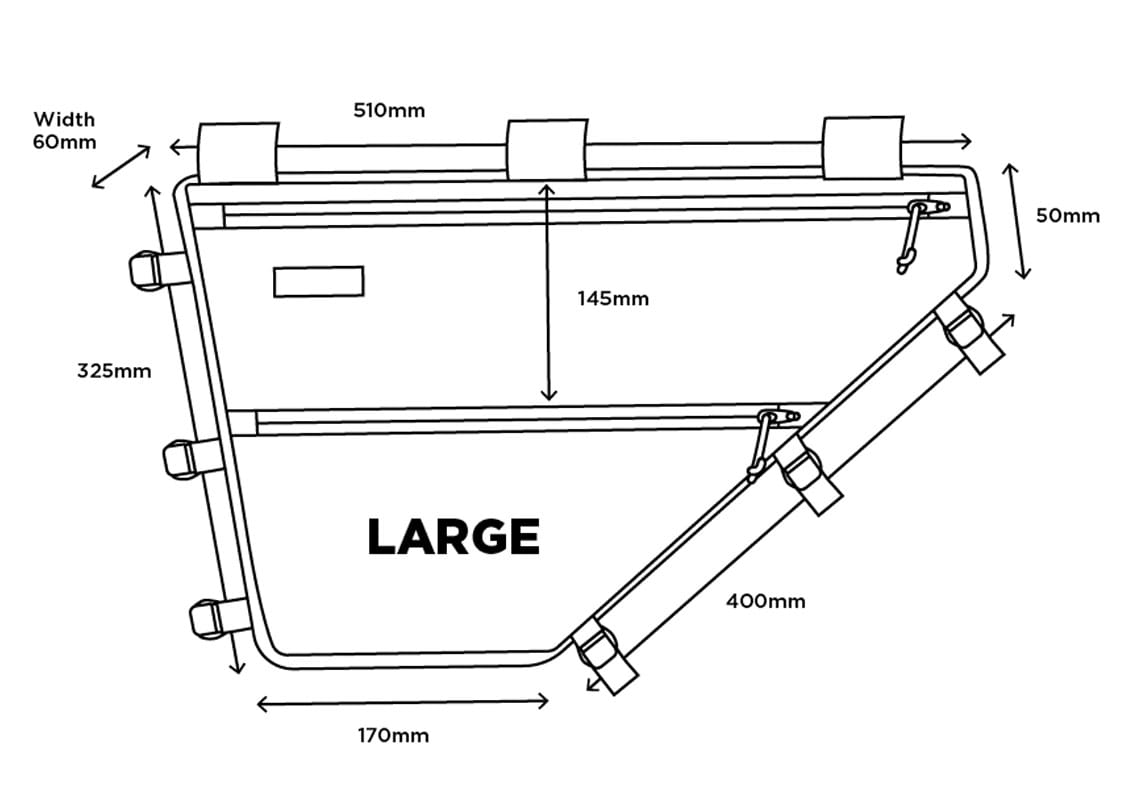 Das robuste, strukturierte Nylon und das strapazierfähige VX21-Gewebe widerstehen Wind, Wetter und Dreck. Der untere Bereich ist abwischbar, damit deine Tasche auch nach matschigen Offroad-Etappen wieder wie neu aussieht. Gummierte Riemen und stabile Gurtbänder mit Klemmschnallen sorgen für perfekten Halt ohne Verrutschen.