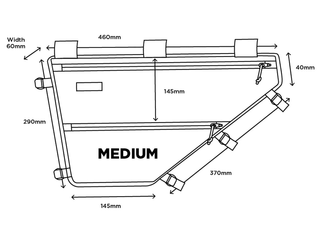 Das robuste, strukturierte Nylon und das strapazierfähige VX21-Gewebe widerstehen Wind, Wetter und Dreck. Der untere Bereich ist abwischbar, damit deine Tasche auch nach matschigen Offroad-Etappen wieder wie neu aussieht. Gummierte Riemen und stabile Gurtbänder mit Klemmschnallen sorgen für perfekten Halt ohne Verrutschen.
