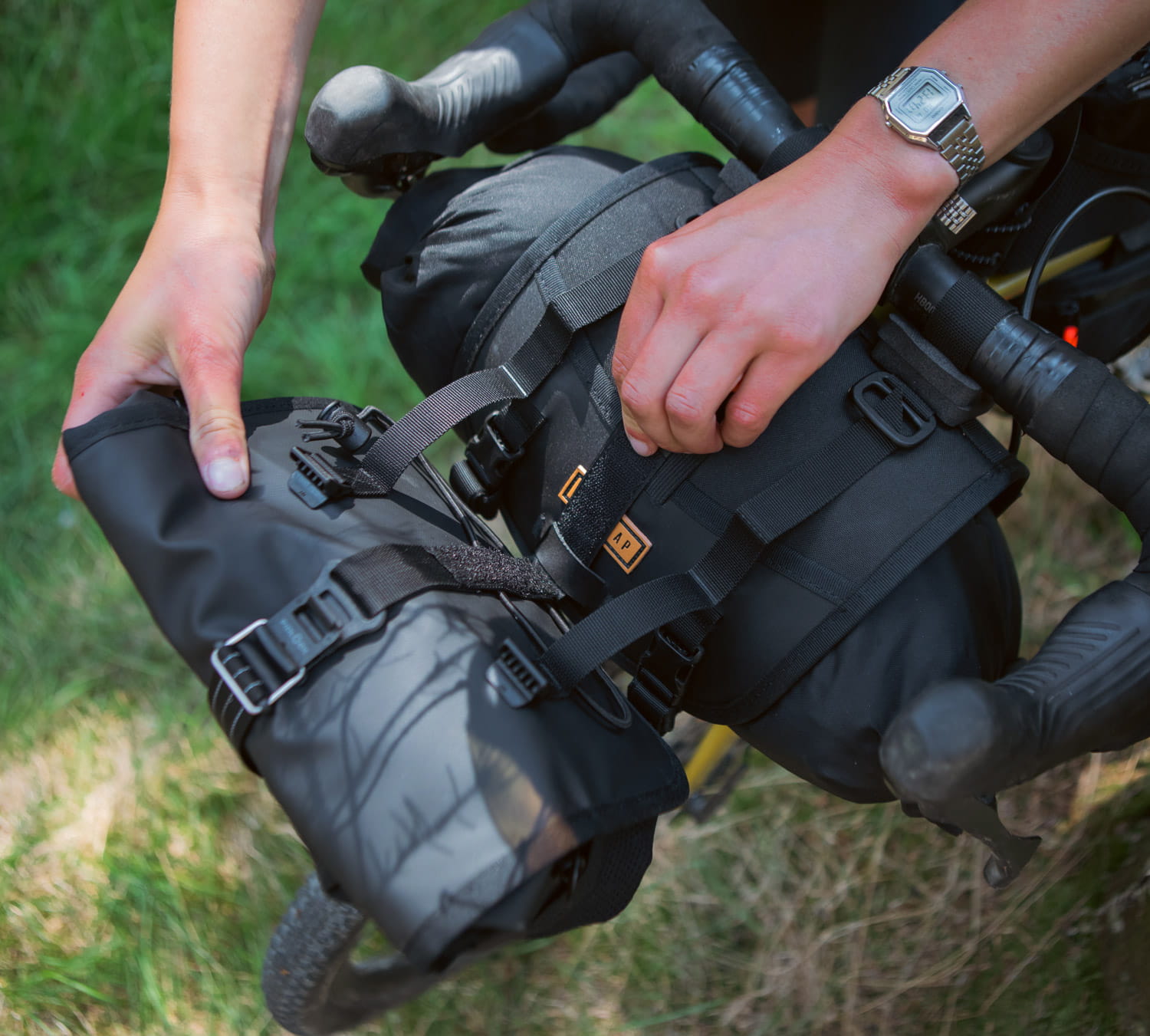 Das Restrap Lenker-Set kombiniert zwei durchdachte Taschen zu einem besonders vielseitigen System für jedes Bikepacking-Abenteuer: Die Holster Bar Bag (14 L) besteht aus einem abriebfesten Holster mit Klettfixierung und einem doppelseitig zugänglichen, wasserdichten Drybag. Einmal befestigt, bleibt das Holster am Rad – der Packsack kann schnell ein- und ausgebaut werden.