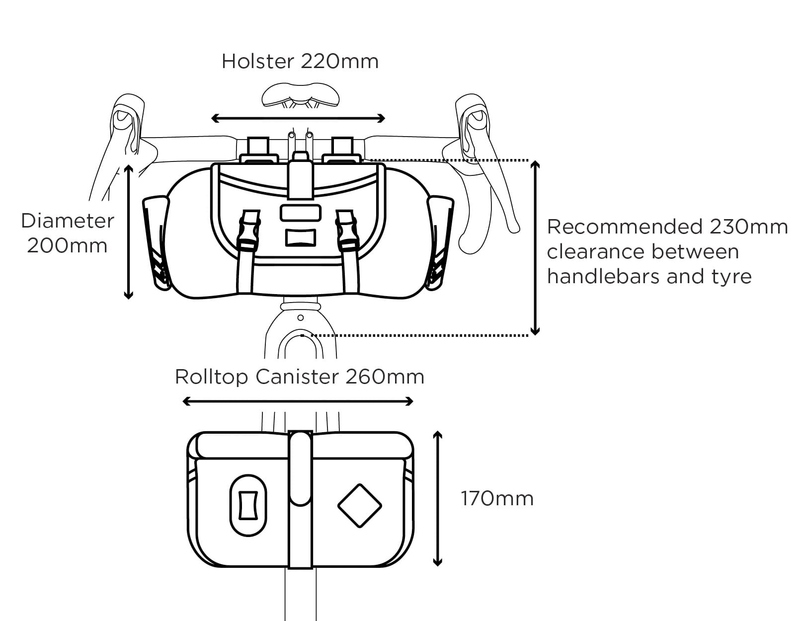 - Gewicht: 480 g (Bar Bag) + 275 g (Rolltop Canister Bag)