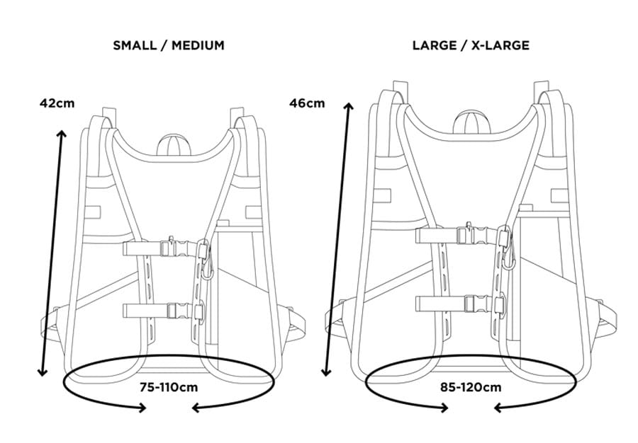 - Gewicht Rucksack (ohne Blase): 368 g (S/M), 380 g (L/XL)