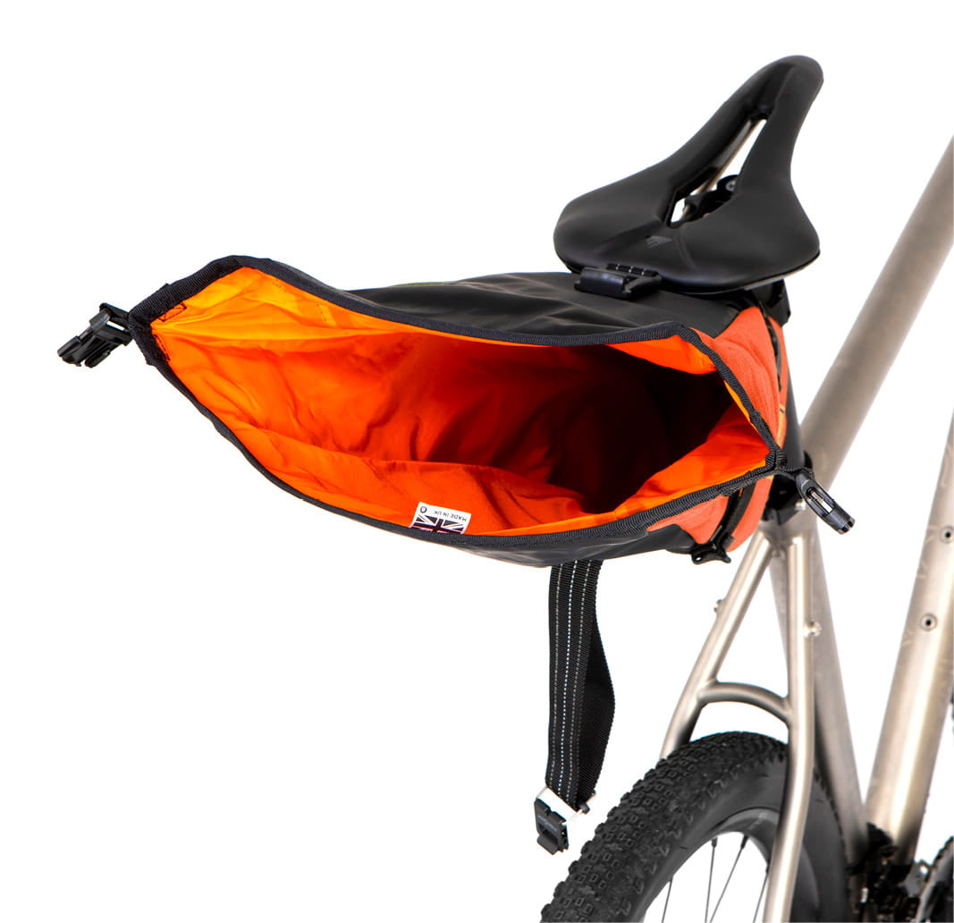 Die verstärkte Struktur der Saddle Pack sorgt für Stabilität – egal, ob sie voll oder leer ist. Die neu designten Befestigungsriemen halten die Tasche sicher an Sattel und Sattelstütze, ohne störendes Schwingen oder Verrutschen. Du kannst dich also voll und ganz auf deine Fahrt konzentrieren.