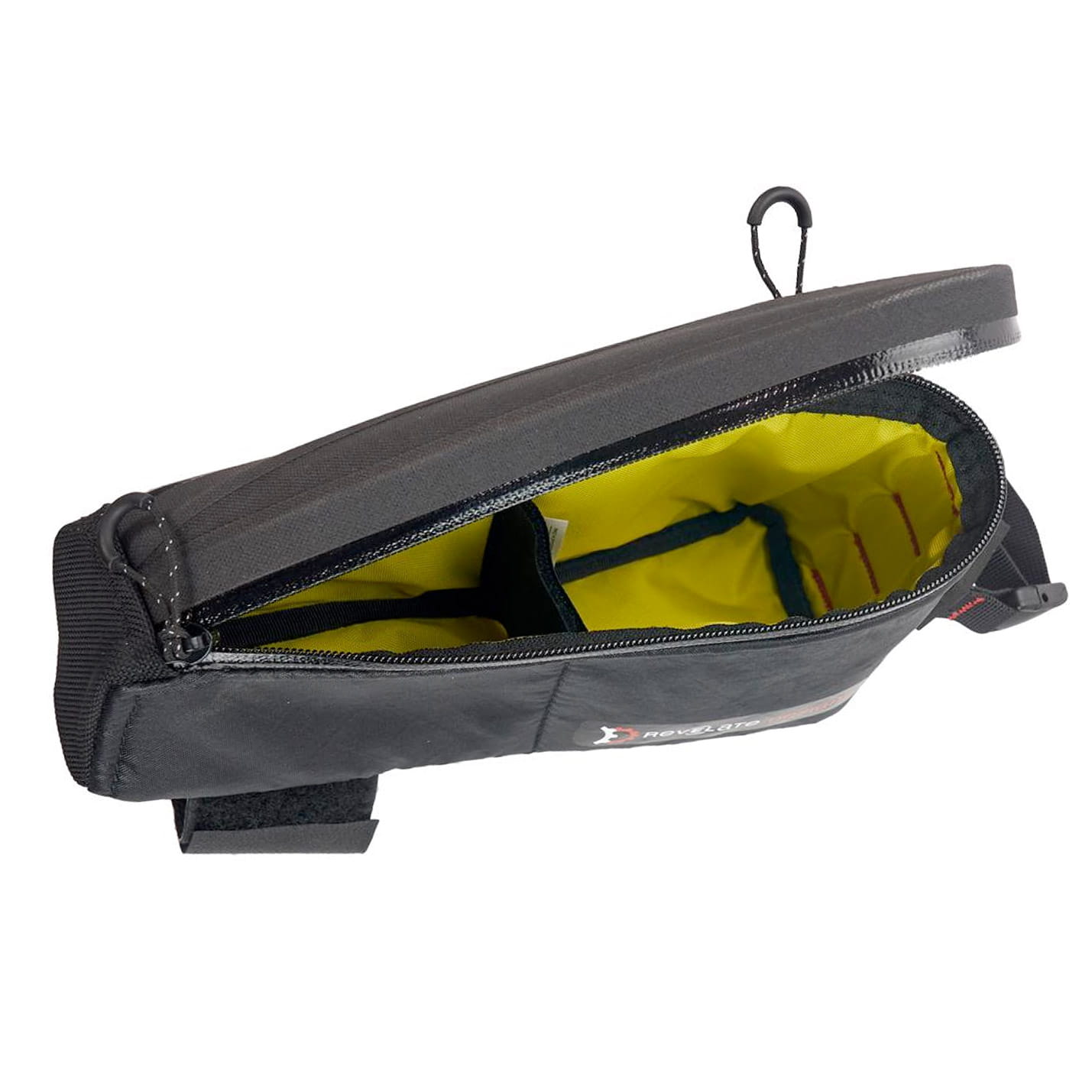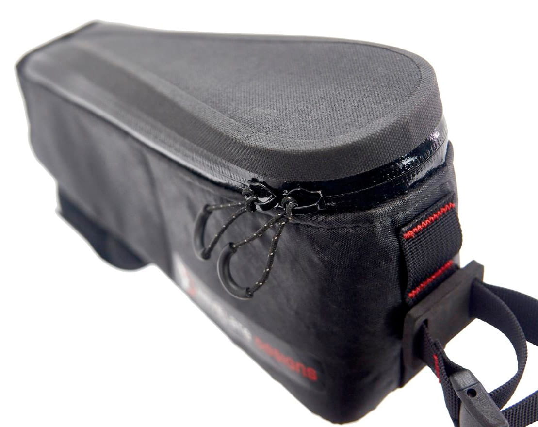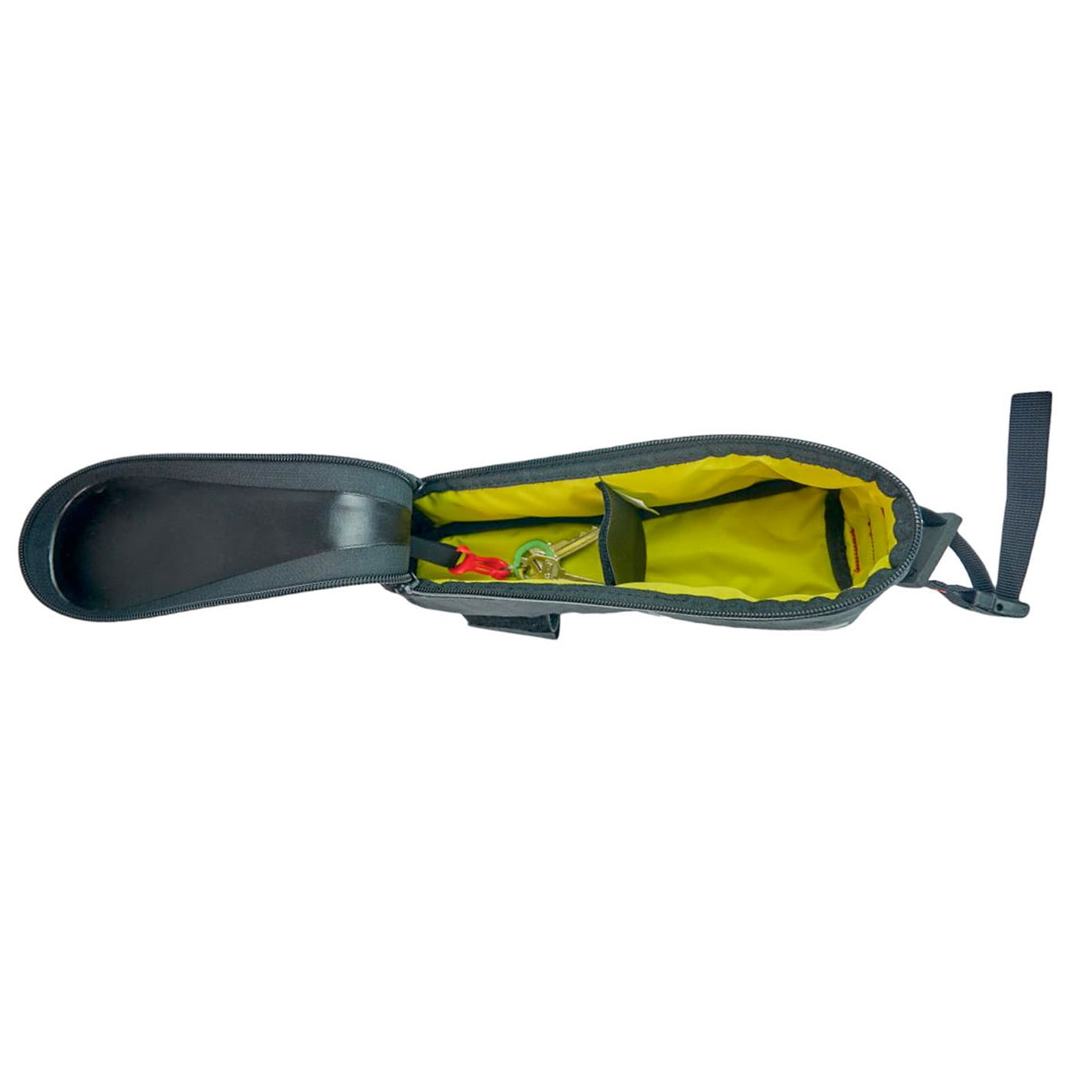 Leicht zugängliche und robuste Oberrohrtasche für die Befestigung an Steuer- und Oberrohr.