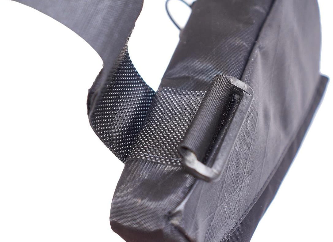 - Robuster Oberrohrgurt aus griffigem Material mit doppelter Rückwicklung für bombenfeste Stabilität