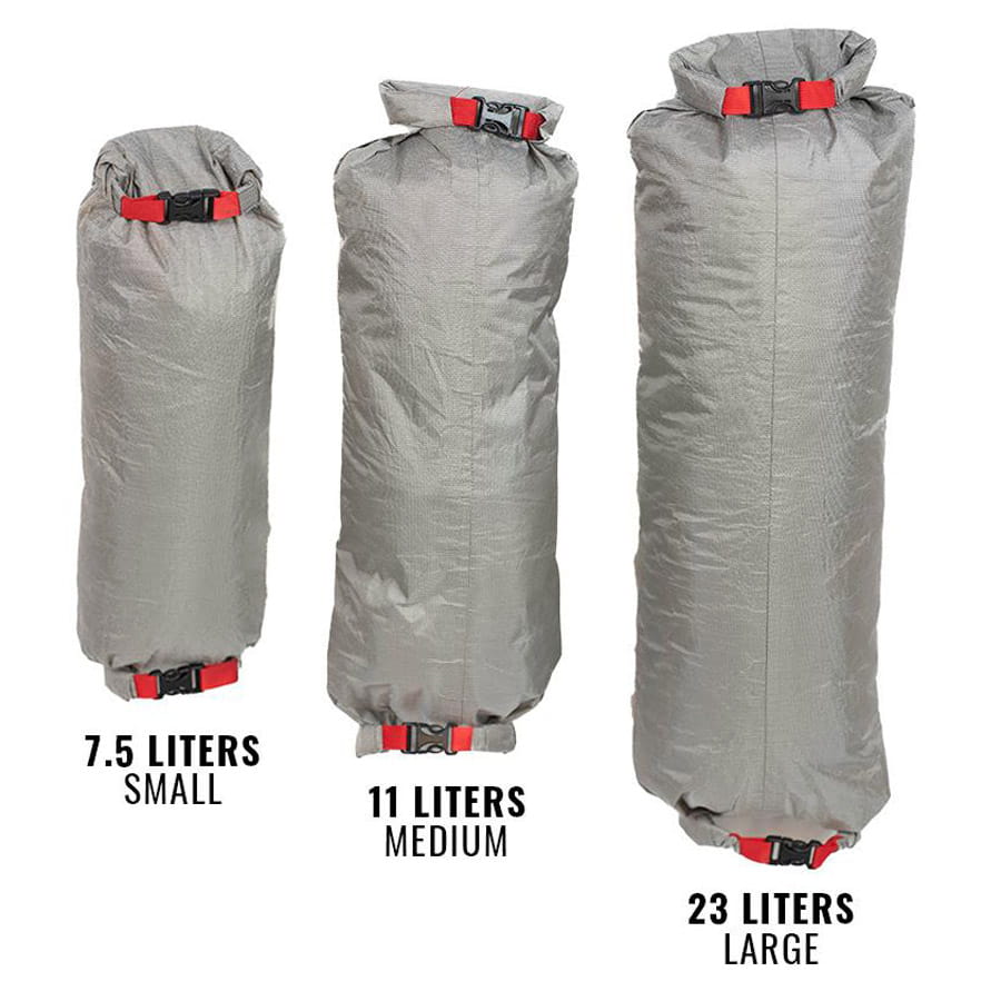 Als Faustregel gilt, je leichter dein Gepäck am Lenker, desto besser ist das Handling deines Bikes. Die Packsäcke in Small und Medium eignen sich am besten für Ultrarennen in warmen Klimazonen und für mehrtägige Singletrails. Der Packsack in Large wurde speziell für Wintertouren entwickelt, um auch Schlafsäcke für Temperaturen unter 0° transportieren zu können.