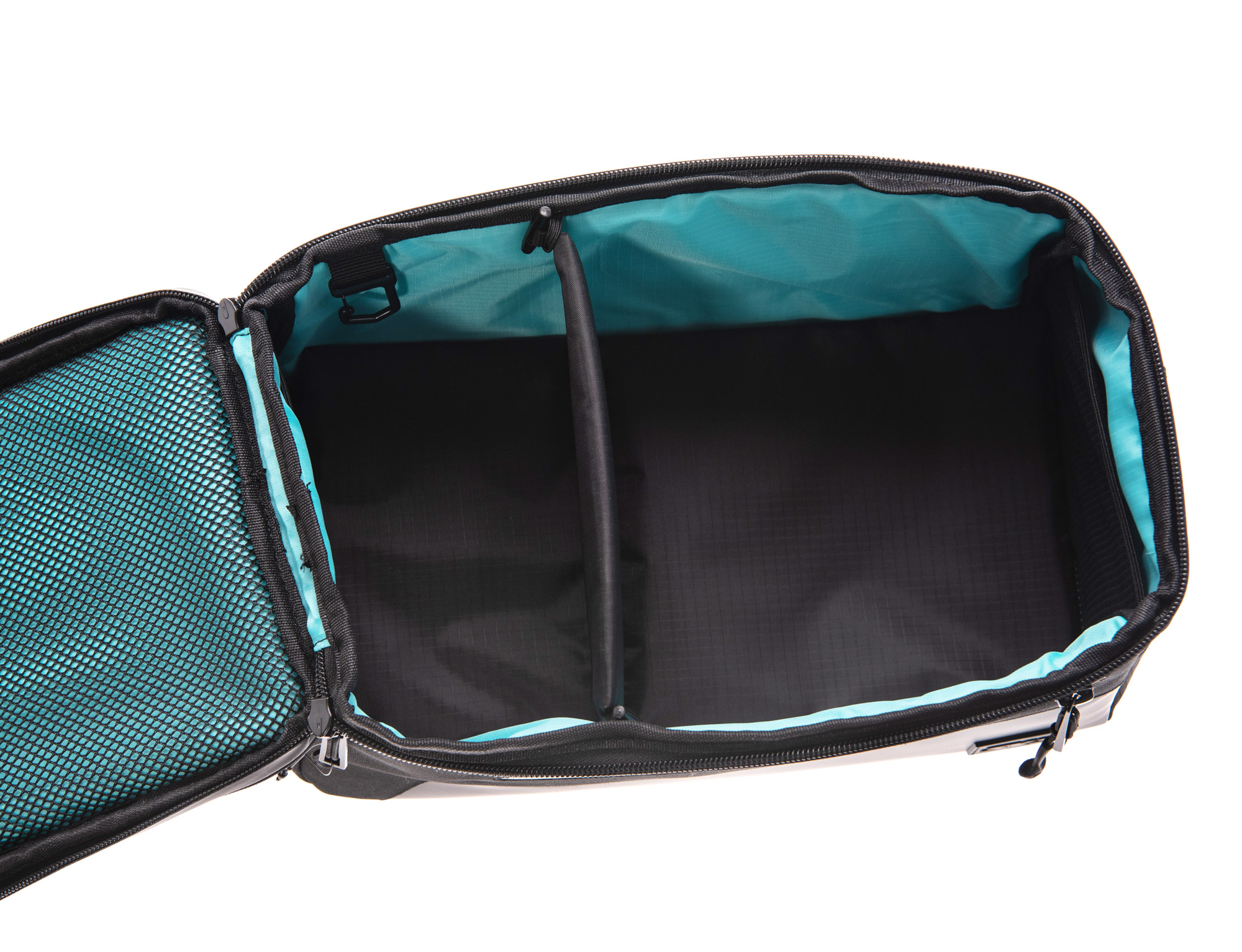 Die Tasche bietet ein Einschubfach auf der Rückseite, eine Trennwand im Innenraum und ein Netzfach im Deckel, damit dein Gepäck übersichtlich bleibt. Der Deckel lässt sich dank Easyzip-Reißverschluss komplett öffnen. Für zusätzliches Gepäck sorgt das doppelte Packnetz.