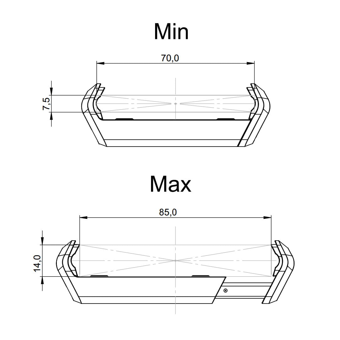- Maximale Geräte- / Hüllenstärke: 14 mm