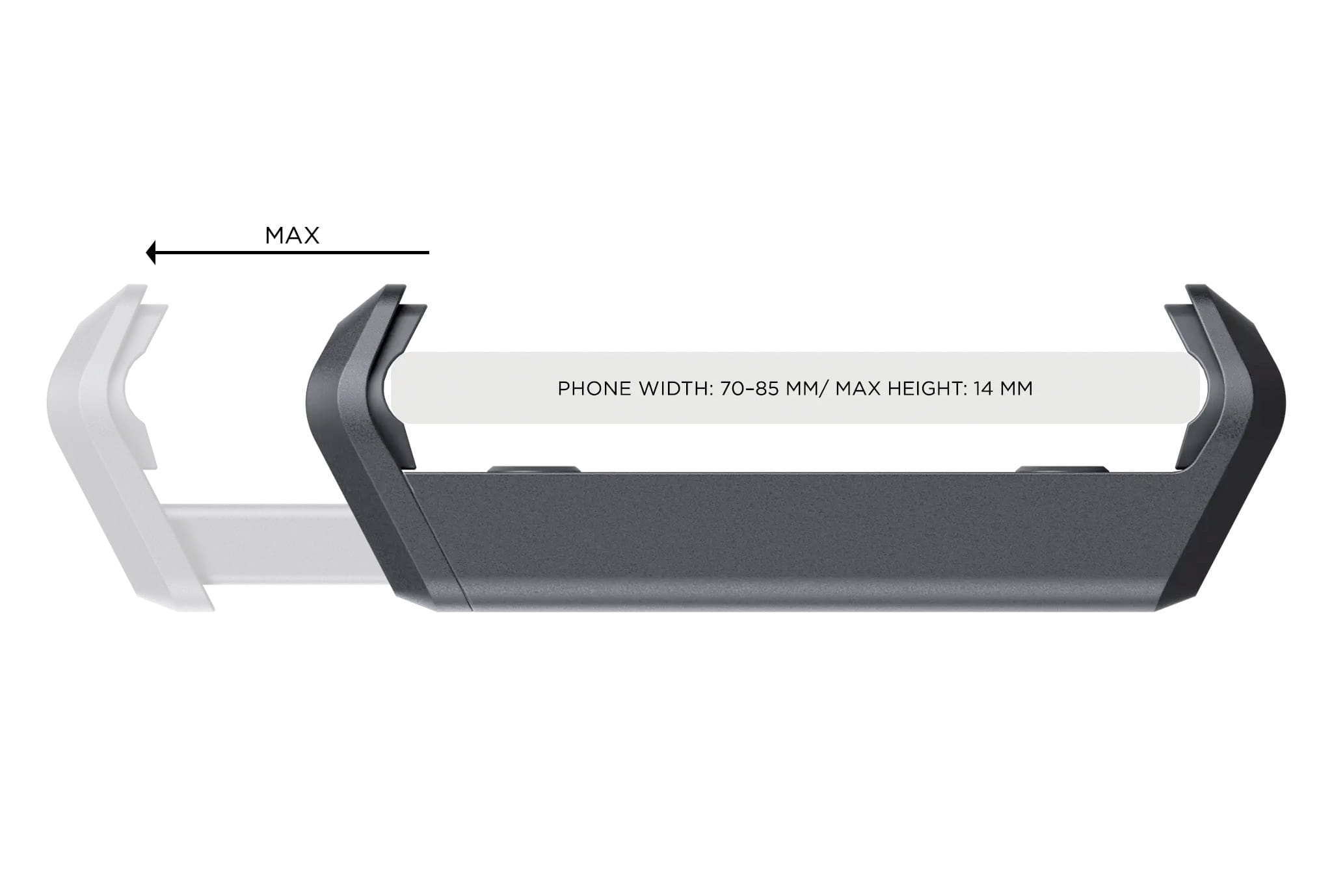 Die Halterung besteht aus langlebigem, glasfaserverstärktem Polyamid und eignet sich für nahezu alle Smartphones – mit oder ohne Hülle – bis zu einer Stärke von 14 mm und einer Breite von maximal 85 mm. Weiche Gummieinlagen an der Innenseite und an der Rückwand schützen dein Smartphone vor Kratzern und sorgen gleichzeitig für sicheren Halt.