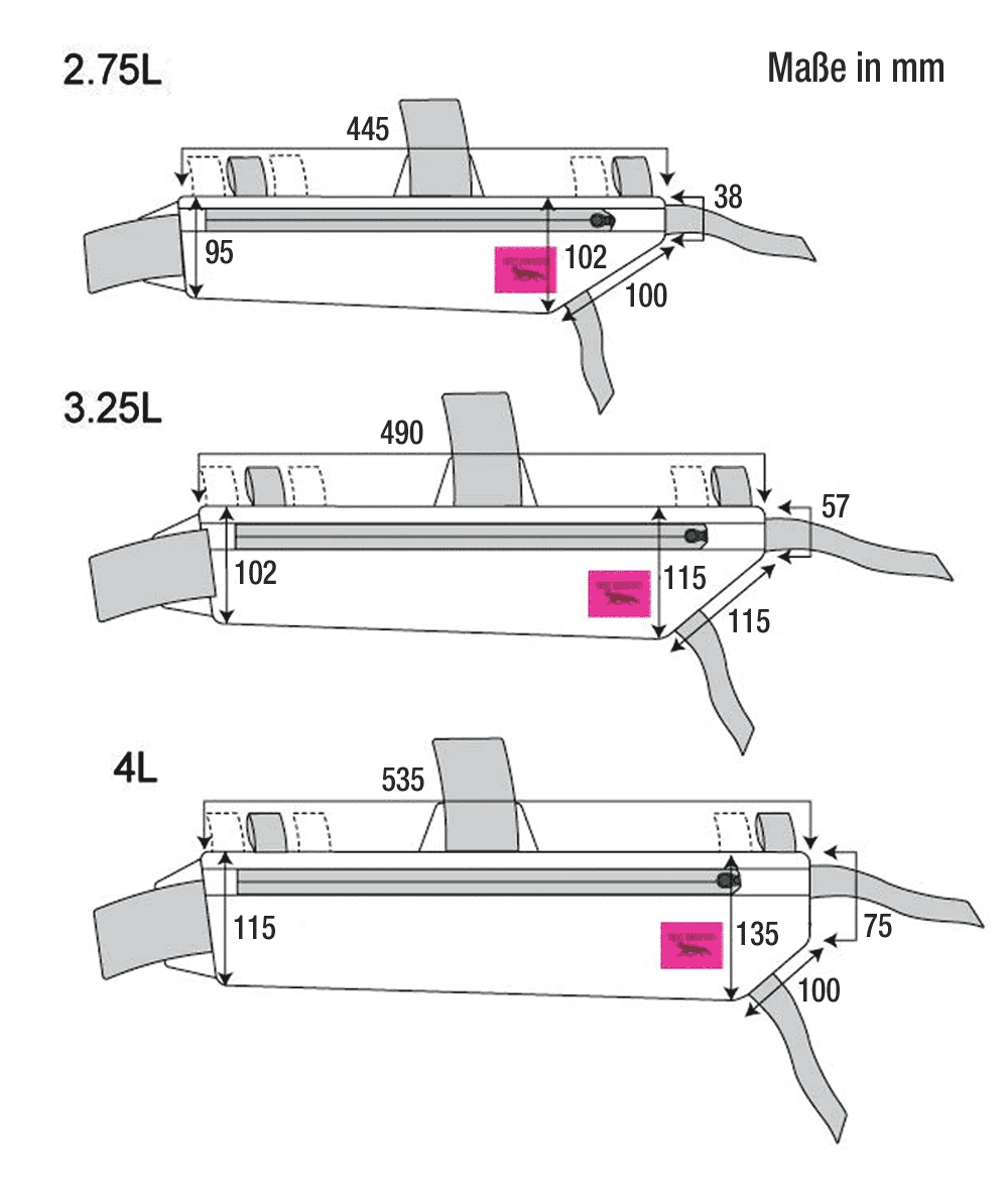 - 2.75 Liter: 445 x 102 x 60 mm (L x H x B)
