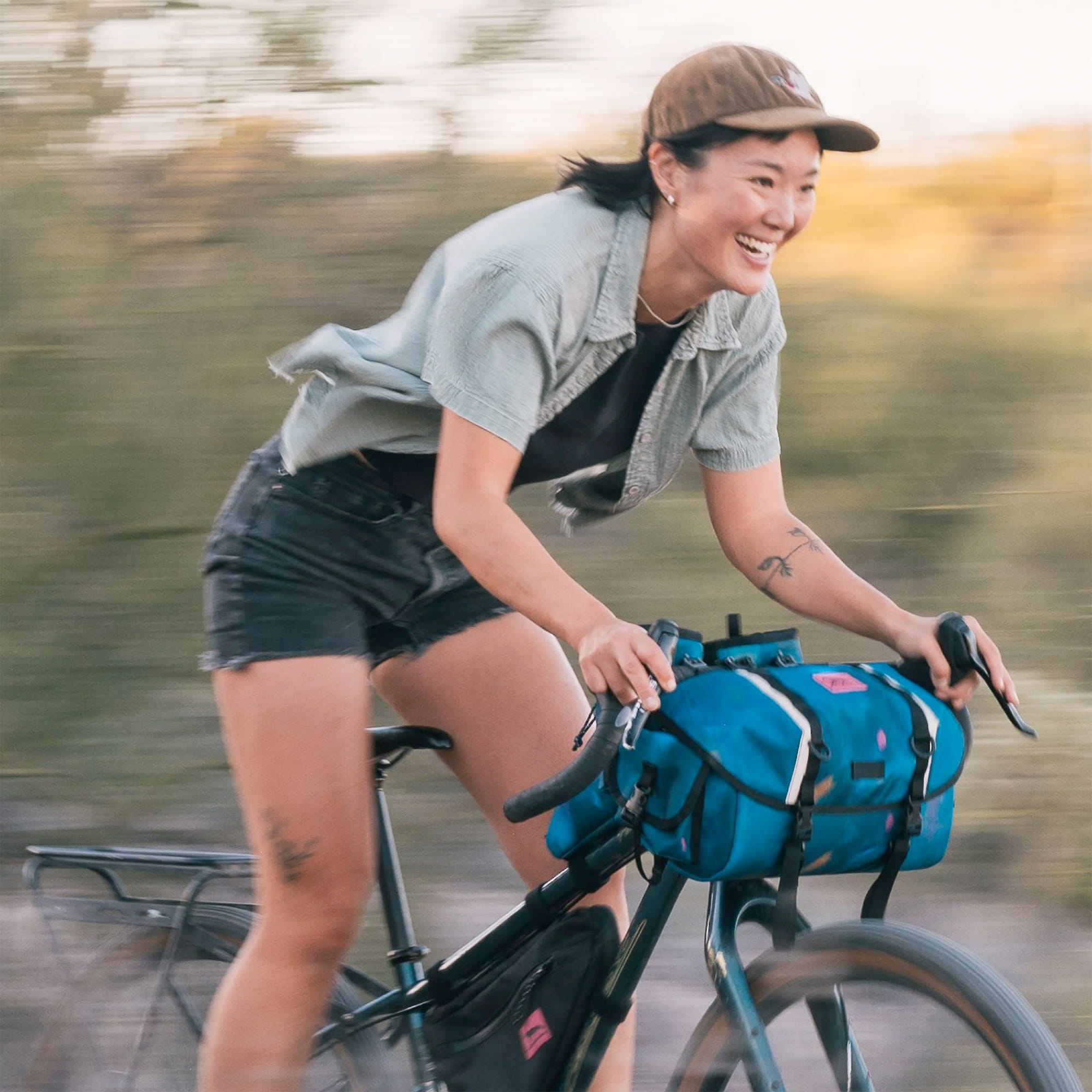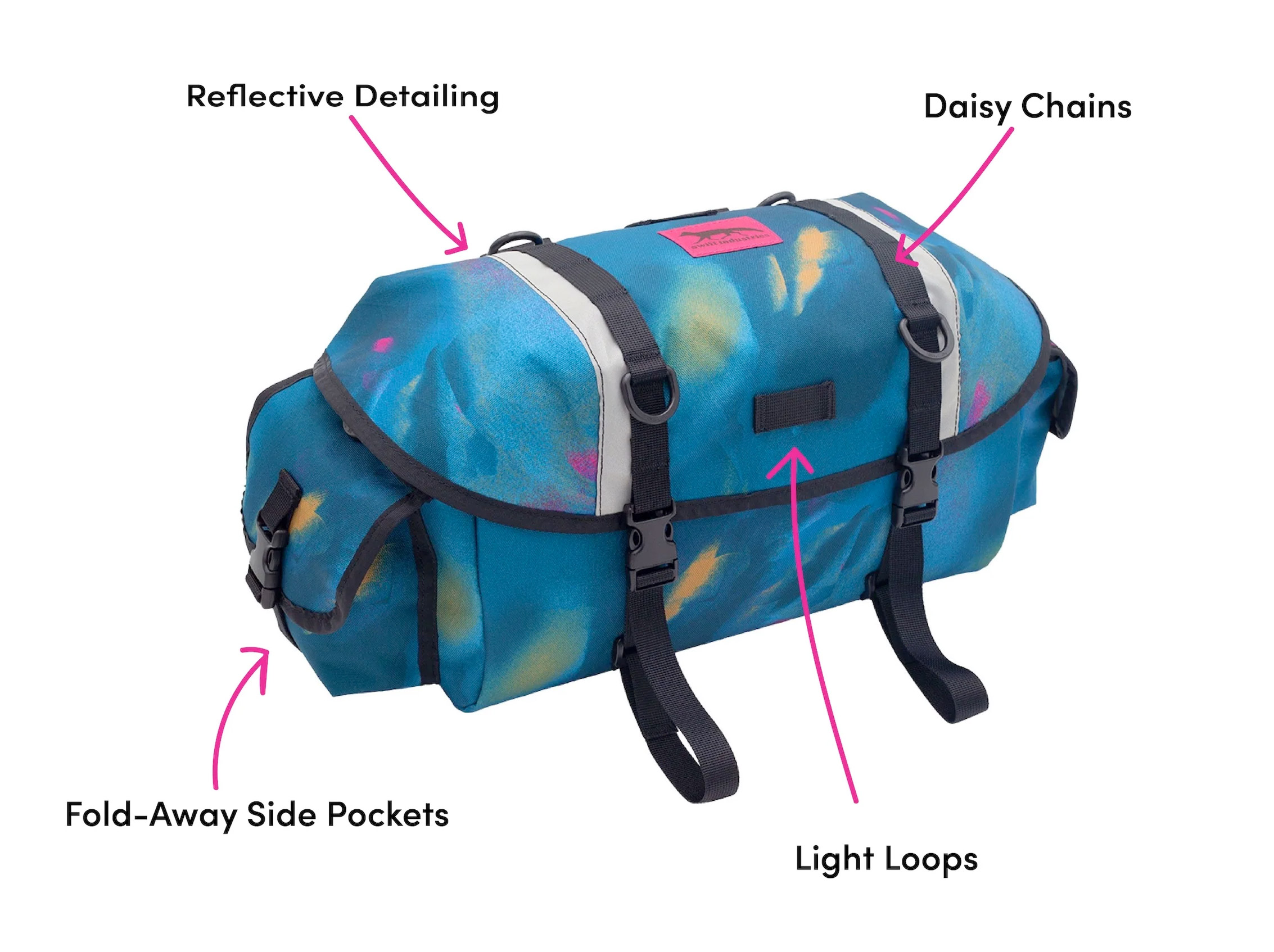 Die Swift Industries Zeitgeist Pack bietet 12 Liter Stauraum direkt am Lenker deines Fahrrads und verfügt über zwei praktische Seitentaschen, die sich bei Nichtgebrauch flach zusammenfalten lassen. Mit dem optional erhältlichen Bungee Booster holt man noch mehr Kapazität aus dem Deckel der Zeitgeist Lenkertasche raus.
