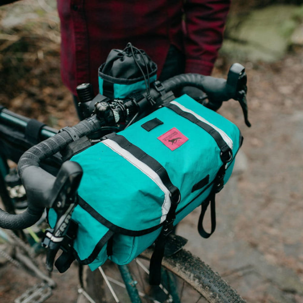 Die Swift Industries Zeitgeist Pack bietet 12 Liter Stauraum direkt am Lenker deines Fahrrads und verfügt über zwei praktische Seitentaschen, die sich bei Nichtgebrauch flach zusammenfalten lassen. Mit dem optional erhältlichen Bungee Booster holt man noch mehr Kapazität aus dem Deckel der Zeitgeist Lenkertasche raus.