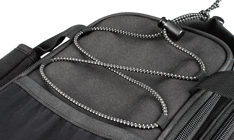 - Mesh-Tasche und reflektierende Spanngummis auf der Oberseite