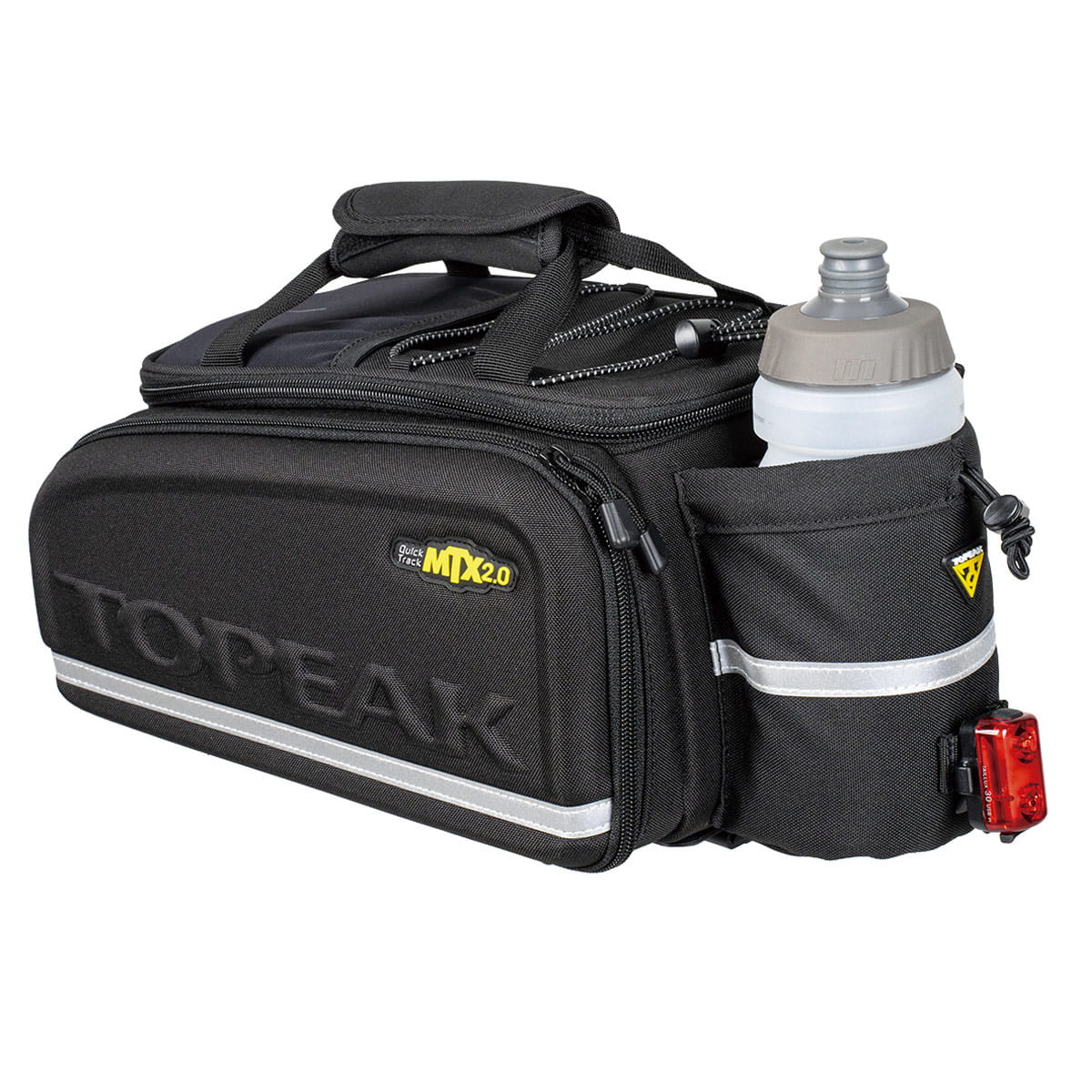 MTX TrunkBag mit großem Fassungsvermögen dank unterteilbarem Hauptfach, zwei ausklappbaren Seitentaschen und einer integrierten Flaschenhalterung. Unser einzigartiger Konstruktionsprozess kombiniert vorgeformte Paneele und flexibles Gewebe für idealen Schutz & Robustheit. Kompatibel mit allen MTX QuickTrack® 2.0-Gepäckträgern mit Side Frames.
