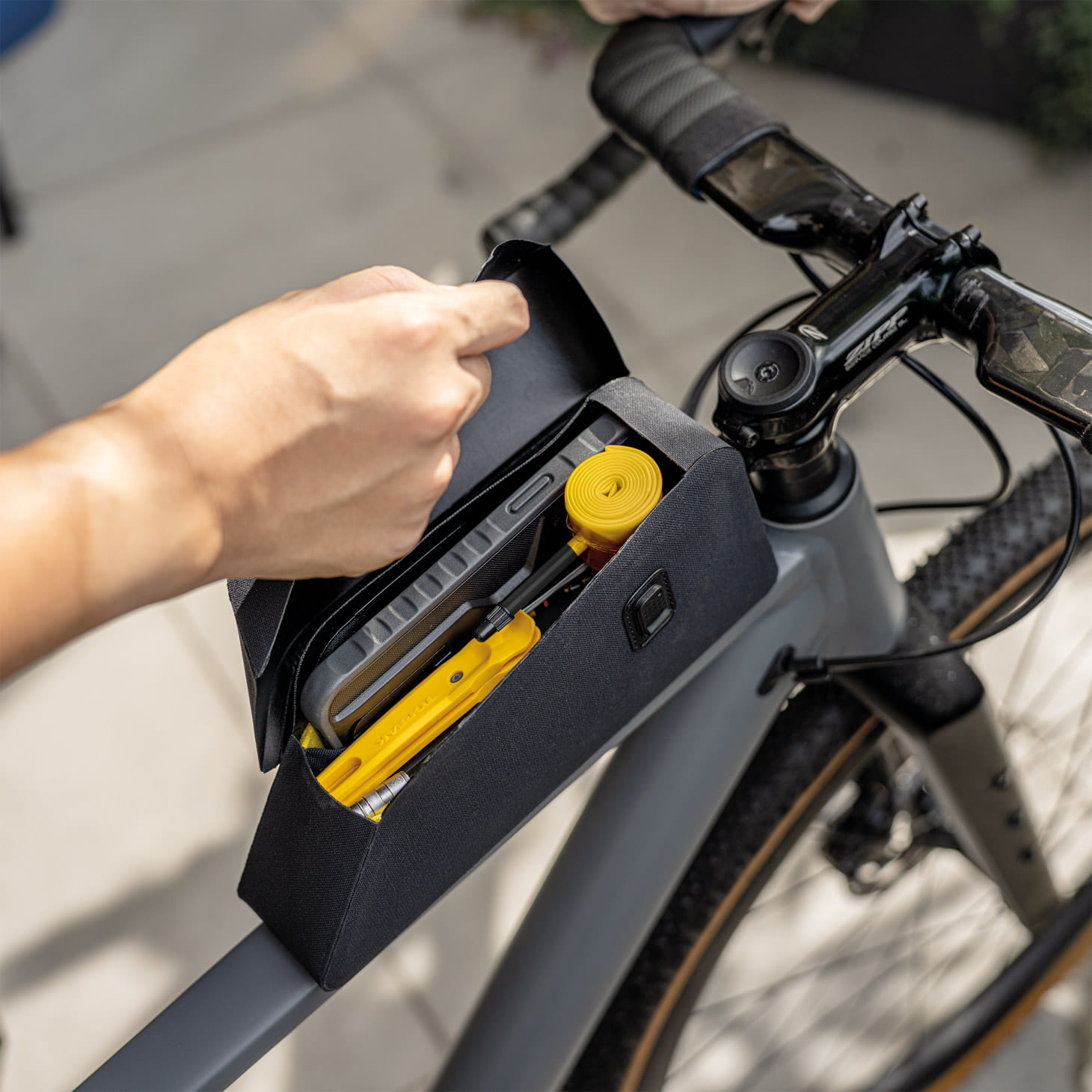 - Wetterfeste Oberrohrtasche mit schlankem Design