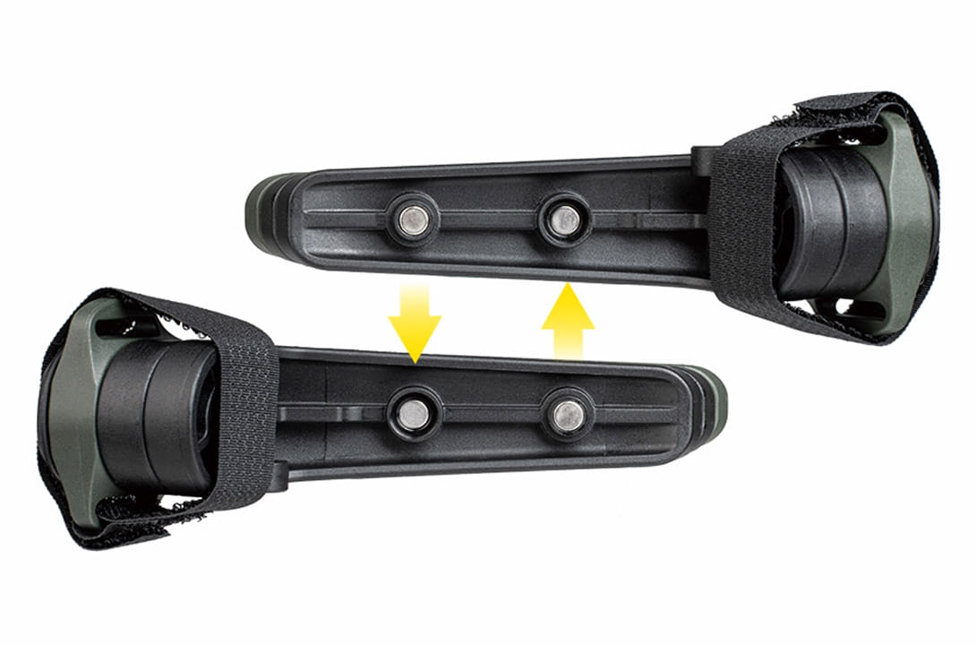 - Integrierte Magnete halten die beiden Stands beim Transport zusammen