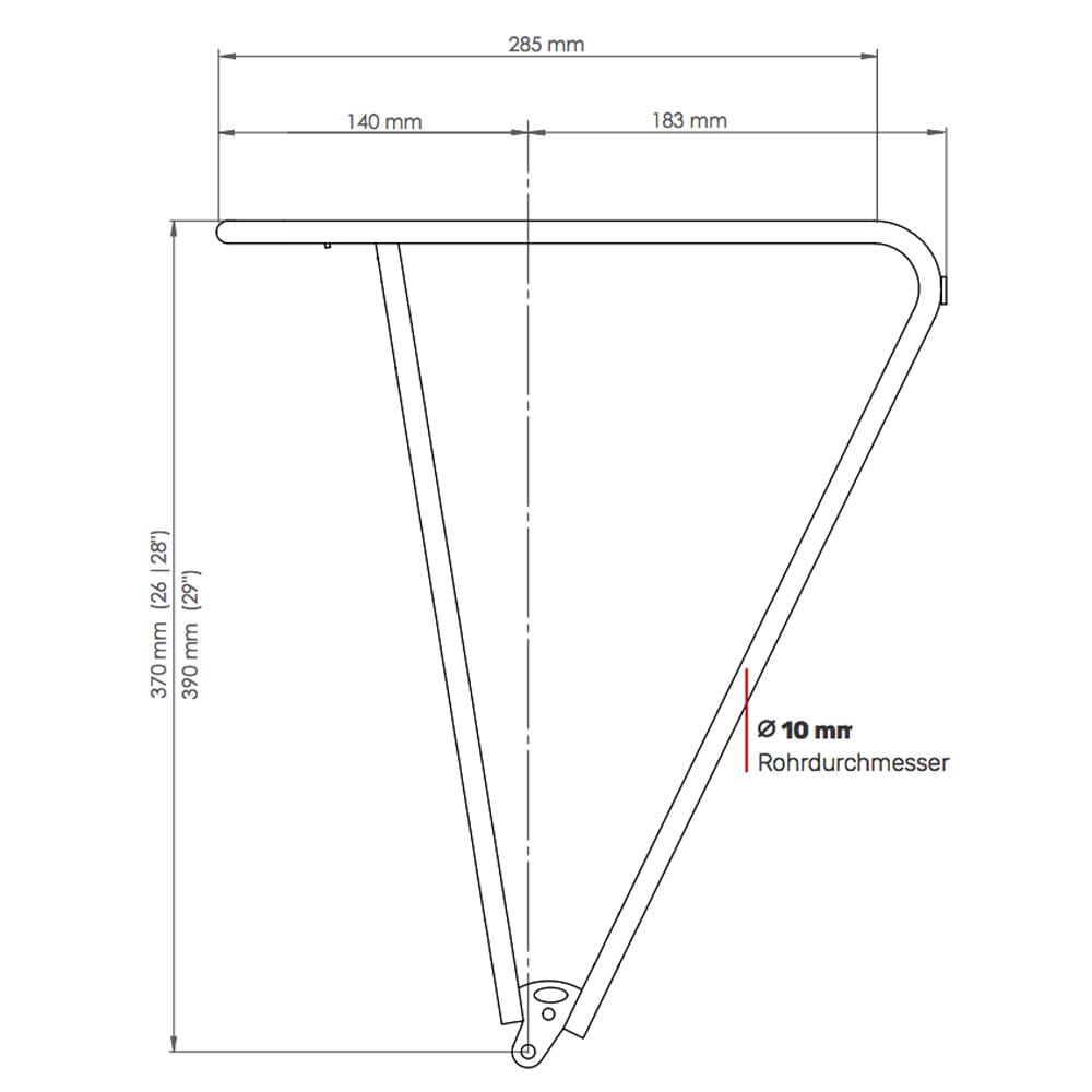 - Höhe: 370 mm (Mitte Anschraubpunkt bis Oberkante Plattform)