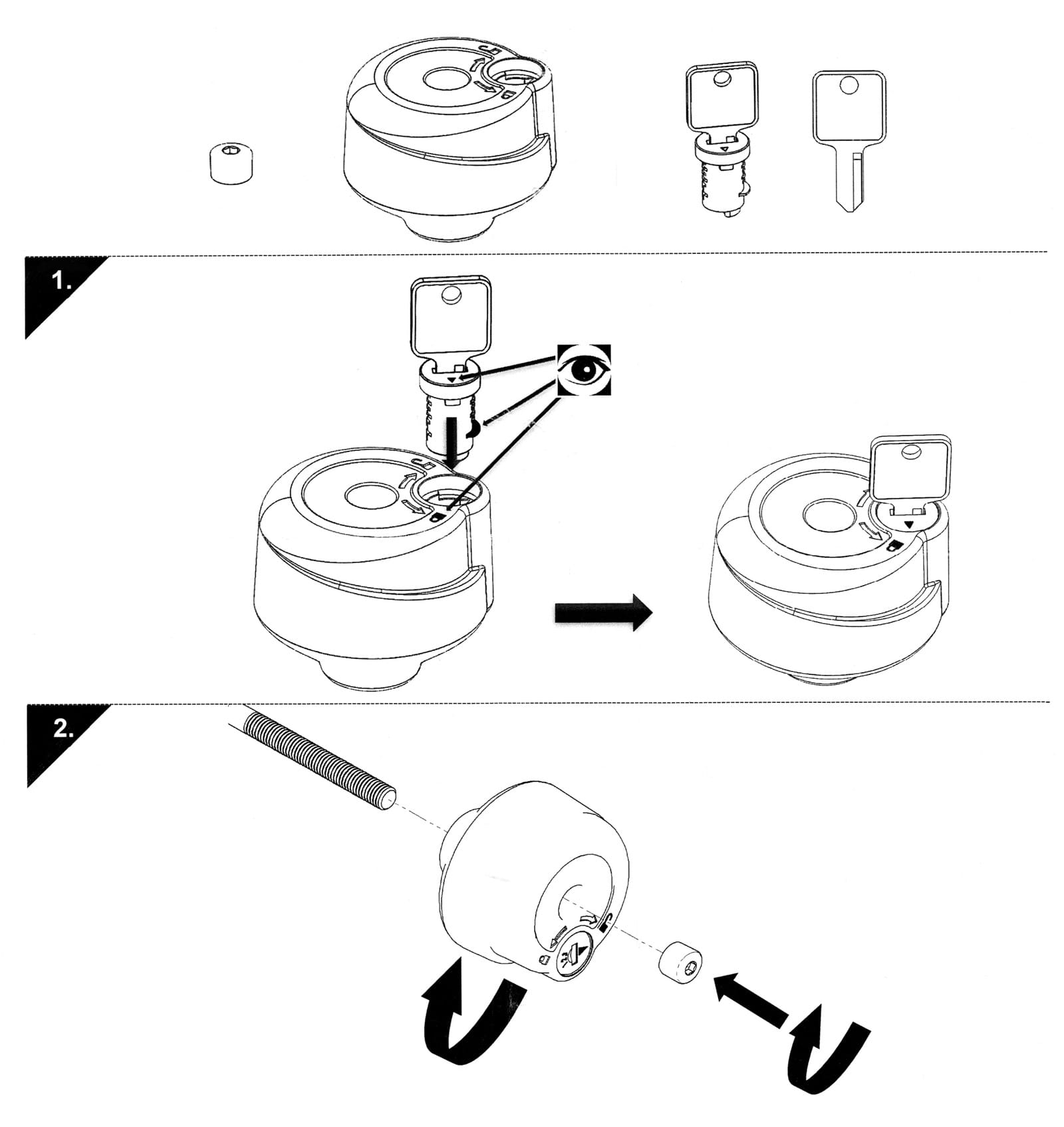 - Die Knebelmutter im 2er-Set sind gleichschließend – du kannst beide Schlösser mit dem gleichen Schlüssel bedienen.